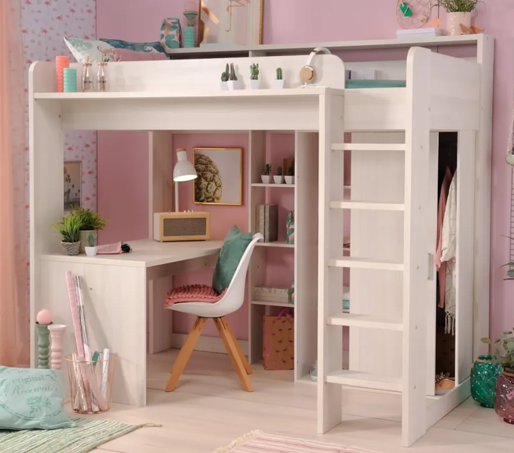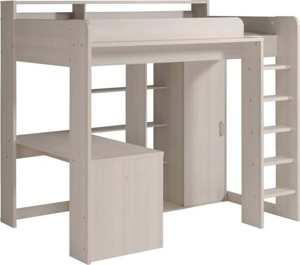 Auf Höhe des Schlafplatzes befinden sich Regalfächer für Bücher etc.