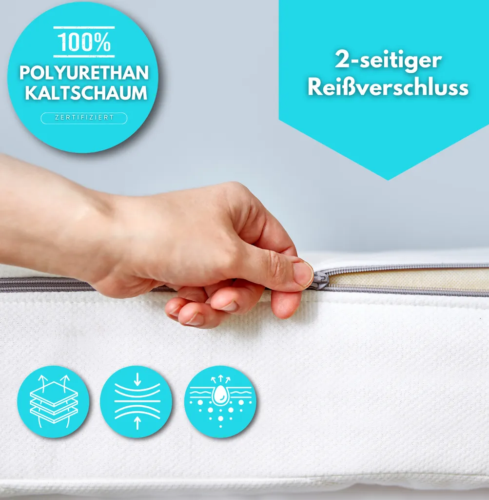 - Der Matratzenbezug ist bei 60° Grad waschbar und Trocknergeeignet.