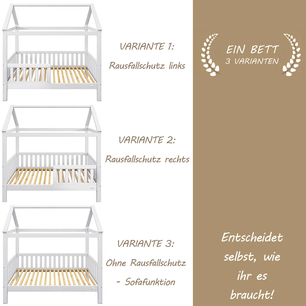 Der variable Rausfallschutz, die abgerundeten Kanten und ein robustes Bettgestell aus Kiefernholz sorgen dabei für einen sicheren Schlaf. Bei einer Belastungsgrenze von 100 kg steht auch einer gemeinsamen Kuschelzeit mit den Liebsten nichts mehr im Wege.