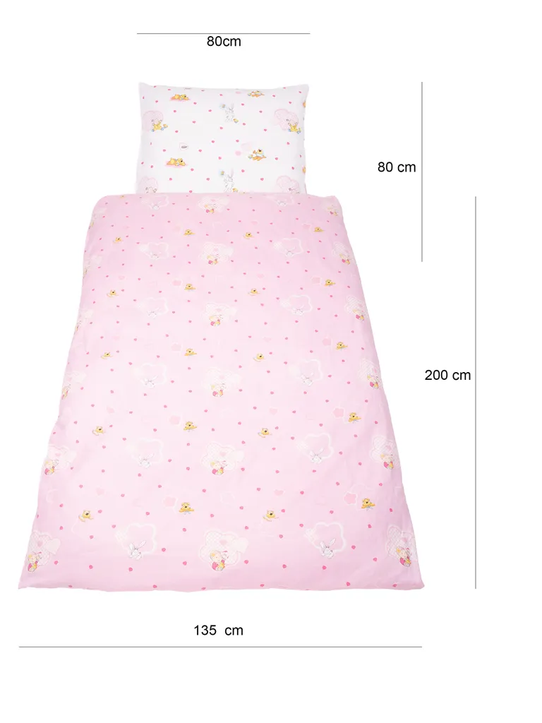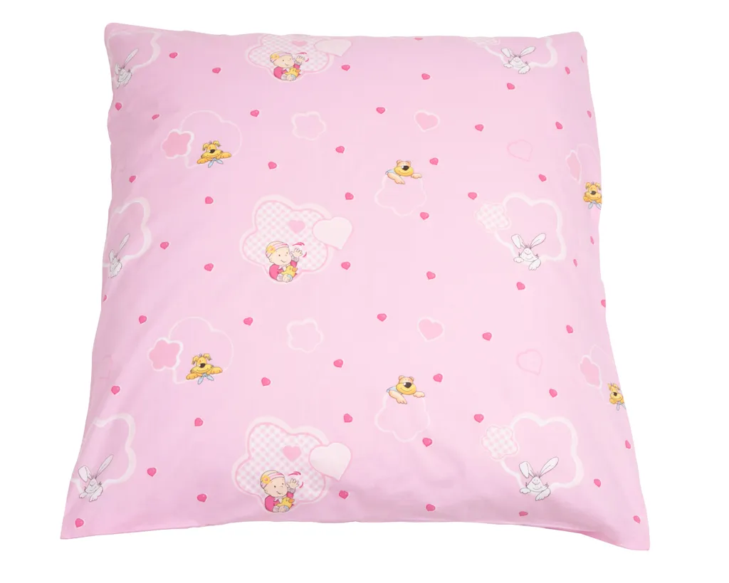 Der weiche Baumwollstoff nach Standard 100 bettet deinen kleinen Liebling weich und warm in der Nacht. Baumwolle ist besonders schonend zur Haut. Die Naturfaser ist atmungsaktiv und damit feuchtigkeitsregulierend. Der Deckenbezug hat eine Größe von 135×200 cm. Der passende Kissenbezug hat eine Größe von 80×80 cm.
