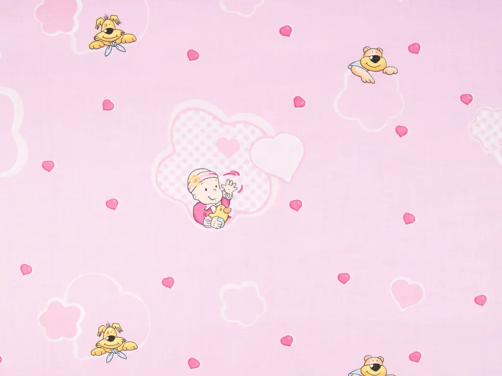 Kuschelweiche Baumwollbettwäsche zum wohl fühlen. Die schöne Baby Born Wendebettwäsche ist von beiden Seiten bedruckt. Entscheide dich immer Neu: Eingebettet in sanften rosa Farbtönen oder doch im schönen Weiß. Egal ob weiß oder rosa, auf beiden Seiten ist Baby Born mit kleiner Spielente sowie niedliche kleine Häschen, Hündchen und Bärchen, ebenfalls mit dem Entchen, abgebildet.