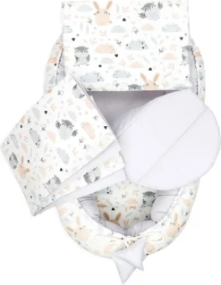Babynestchen Set Neugeborene 90×50 Cm Minky – Kuschelnest Baby Nestchen 5-teilig Kokon Eule Hellgrau