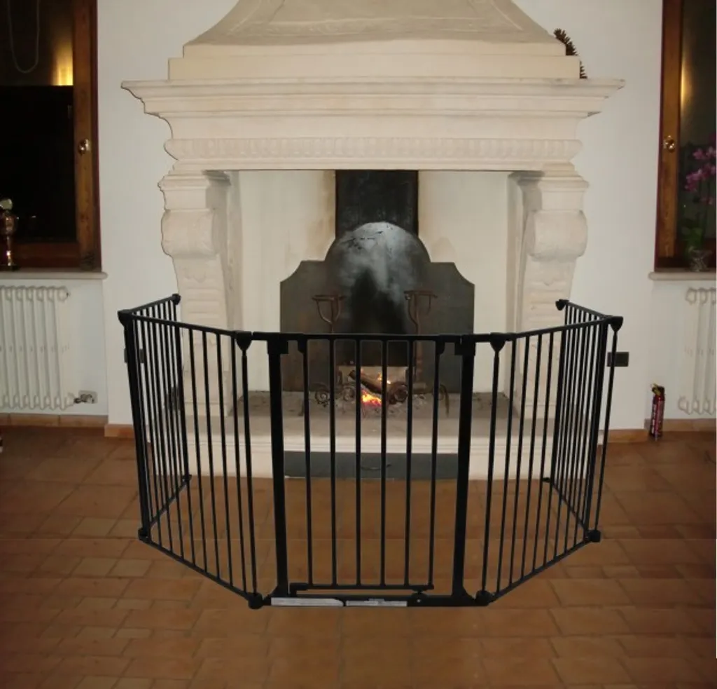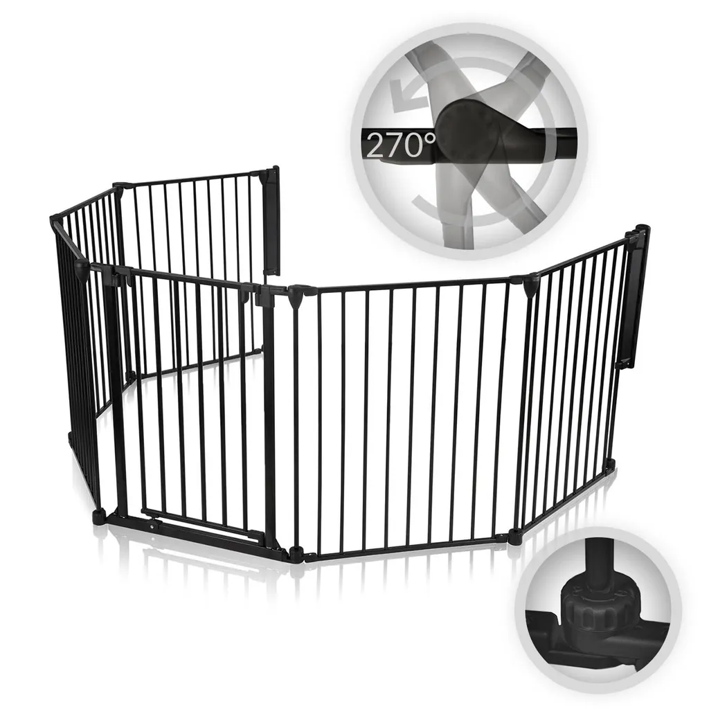 Baby Vivo Kaminschutzgitter / Absperrgitter 5+1 mit Tür in Schwarz (5 Elemente und eine Tür) – PREMIUM