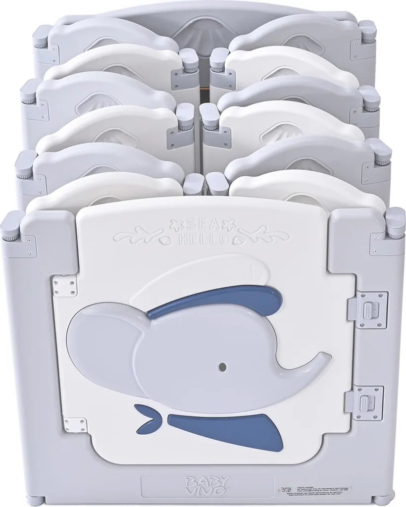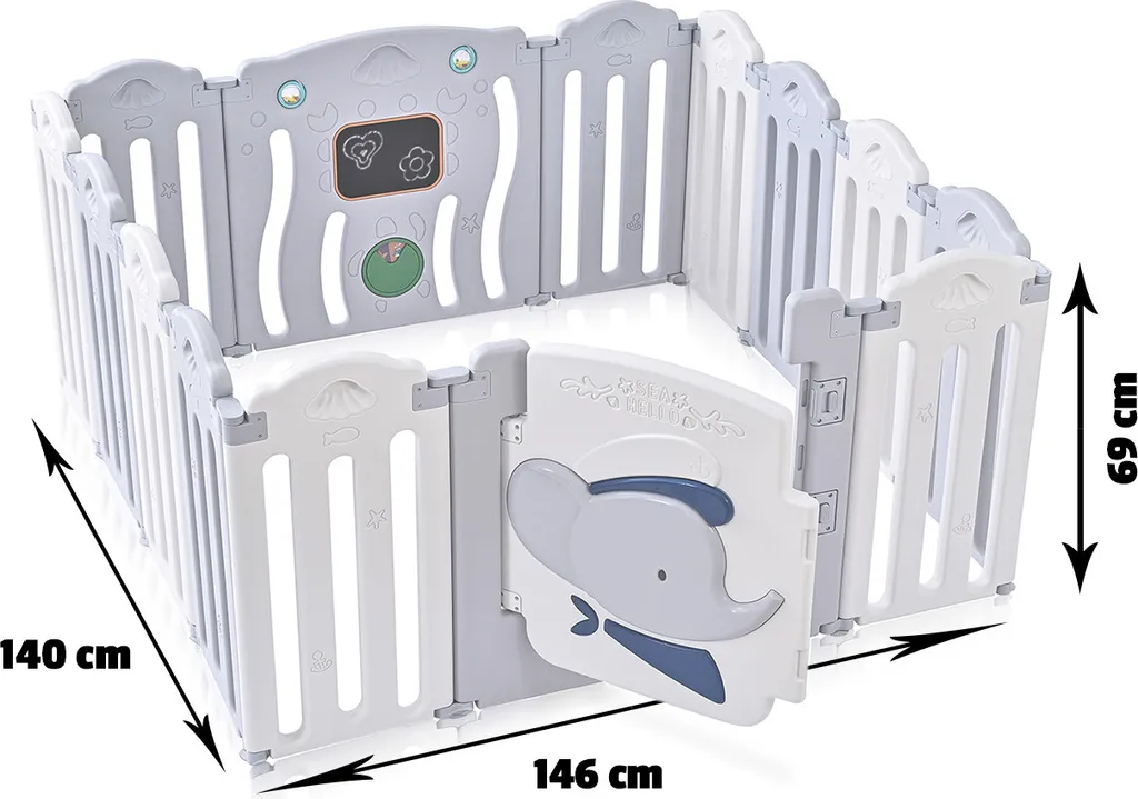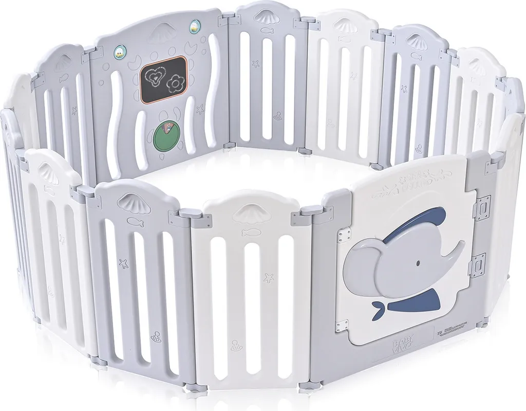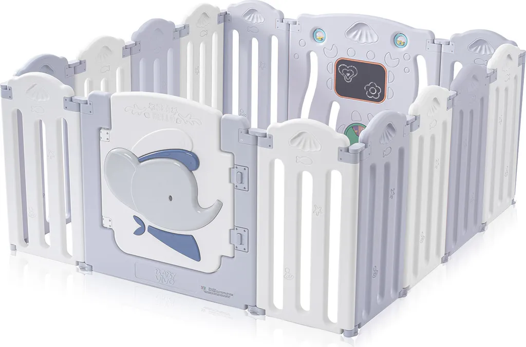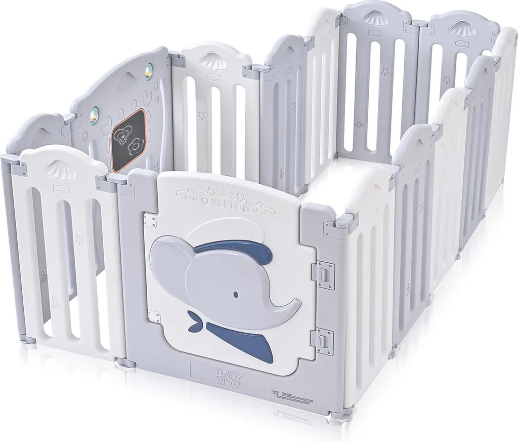 Baby Vivo Laufgitter aus Kunststoff Faltbar – Kapitän Benjamin in Grau und Weiß