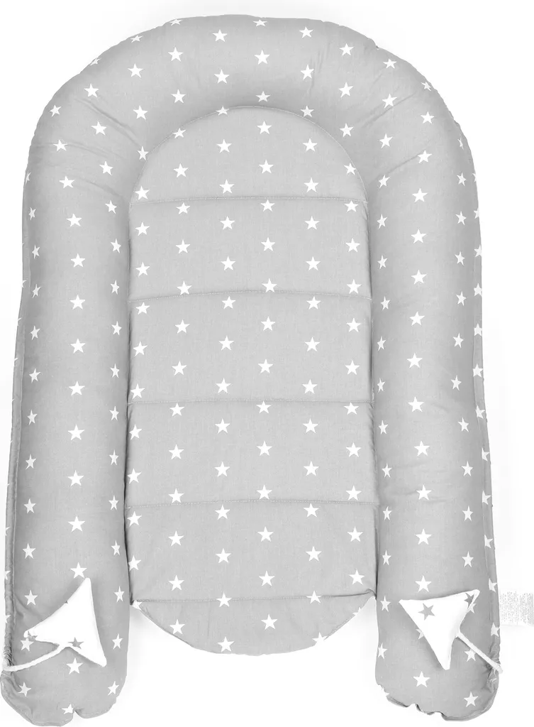 Babynest Kokon Neugeborene 90 X 50 Cm – Handmade Kuschelnest Baby Nestchen Aus Baumwolle Sternchen Grau-Weiß