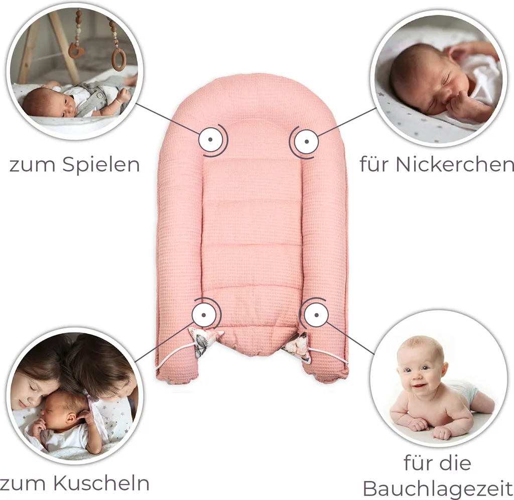 Babynest Neugeborene Nestchen Baby 90×50 Cm – Kokon Handmade Zweiseitig Aus Baumwolle Waffel Mit Babynestchen Wilde Rose Rosa