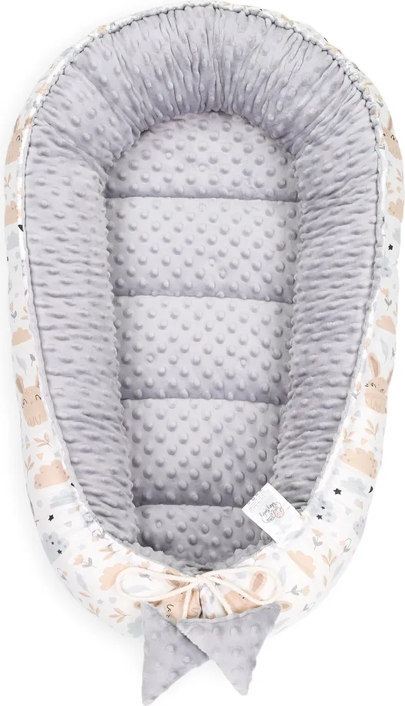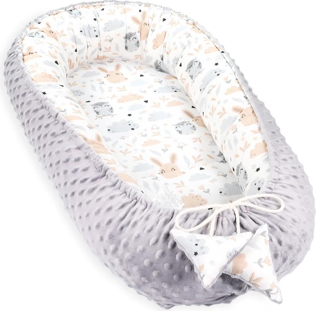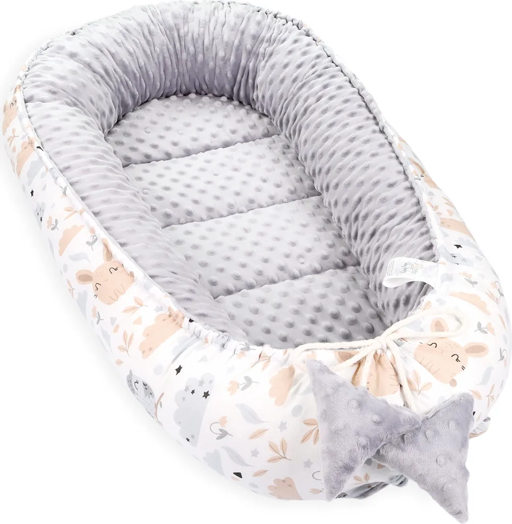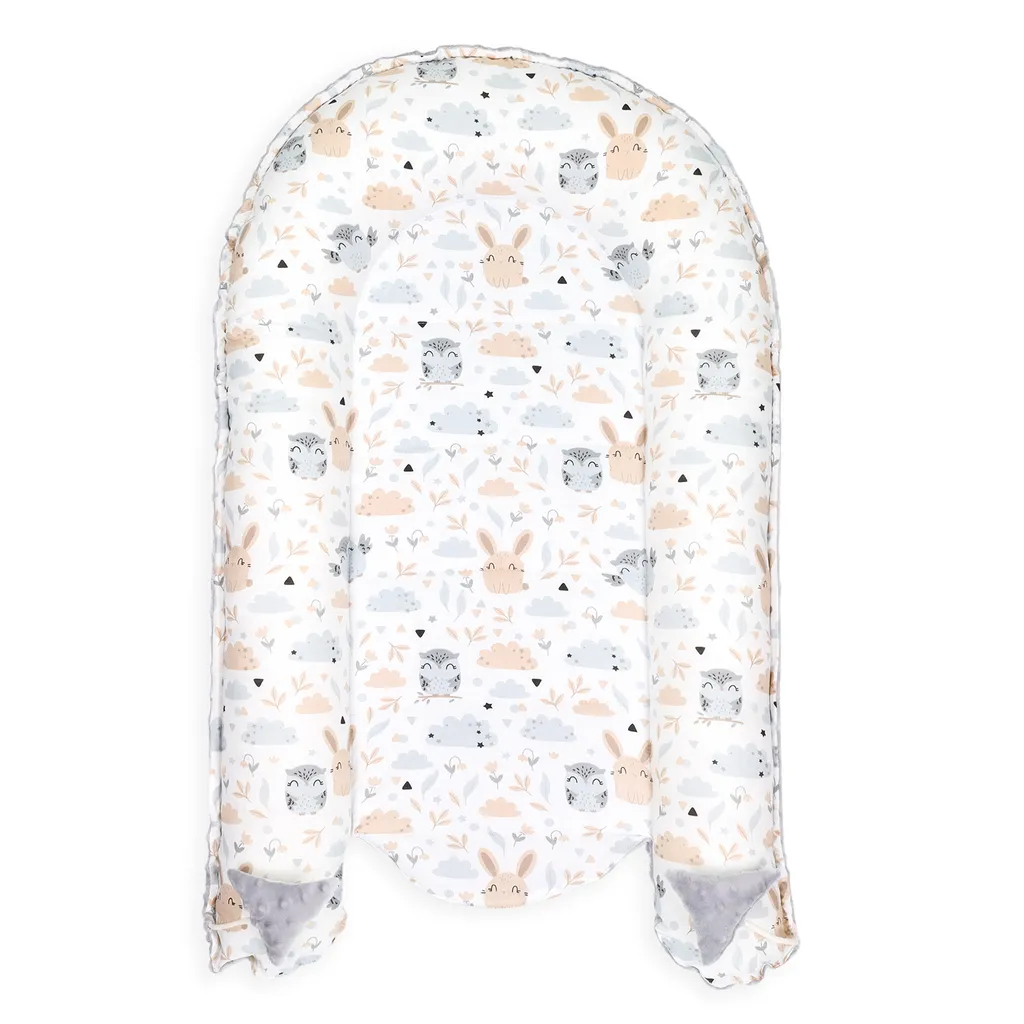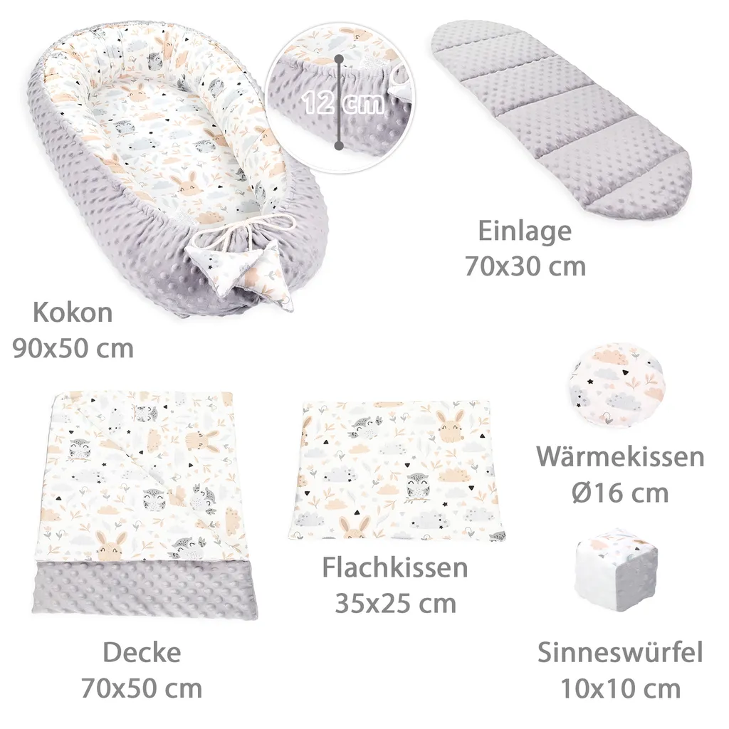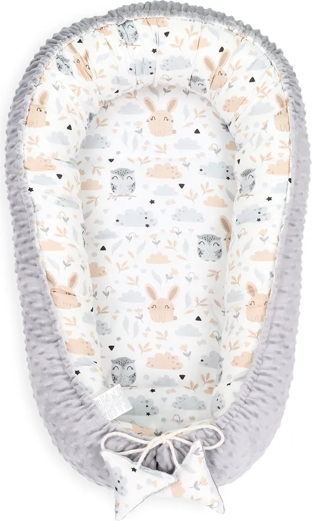 Babynestchen Set Neugeborene 90×50 Cm Minky – Kuschelnest Baby Nestchen 5-teilig Kokon Eule Hellgrau