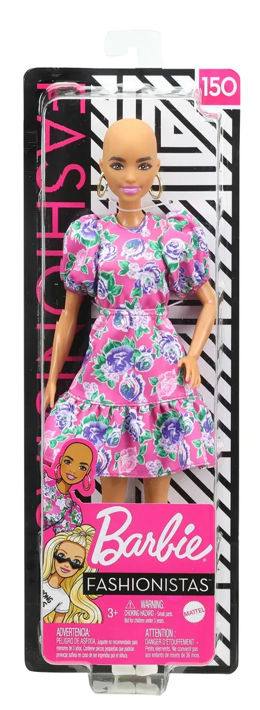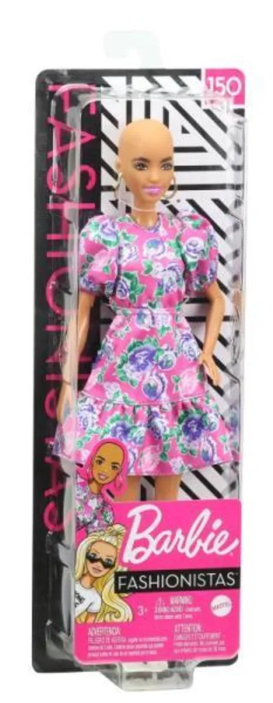 Die Barbie-Puppe hat keine Haare und trägt ein pinkes Kleid mit buntem Blumenmuster und Puffärmeln. Die weißen Stiefeletten und die goldenen Kreolen runden das Outfit ab. Ein tolles Geschenk für Kinder ab 3 Jahren – sie können sich immer wieder neue, fantasievolle Geschichten ausdenken, dabei verschiedene Stile ausprobieren und die Welt von Barbie entdecken!