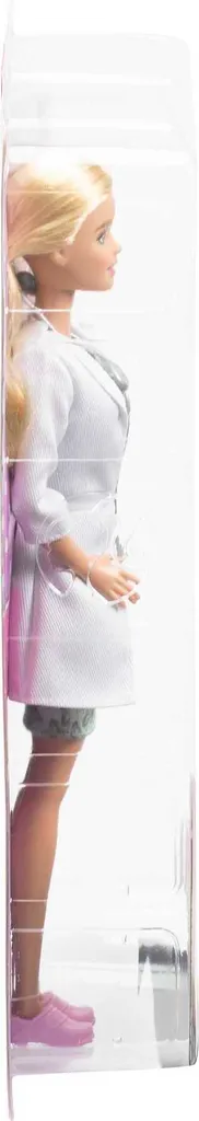 Mit dem Barbie Kinderärztin-Spielset können Kinder kleine Patienten versorgen! Wenn Mädchen mit Barbie spielen, können sie alles werden, was sie sich vorstellen. Und wer sich gern um Babys kümmert, kann Kinderärztin werden! Das Spielset enthält die Barbie Kinderärztin-Puppe (ca. 30 cm) in einem süßen Kleid mit Schmetterlingsmuster und weißem Arztkittel sowie einen niedlichen kleinen Patienten in Windeln. Im Spielset enthalten sind außerdem sechs Zubehörteile (einige kann die Barbie Kinderärztin in der Hand halten): ein Stethoskop, Thermometer, Oszilloskop, Klemmbrett und eine rosa Babydecke und Babyfläschchen, das den kleinen Patienten satt und zufrieden macht. Kinder werden es lieben, sich immer wieder neue Geschichten auszudenken! Die Puppe kann nicht von allein stehen. Abweichungen in Farbe und Gestaltung vorbehalten. Tolles Geschenk für Kinder ab 3 Jahren.
