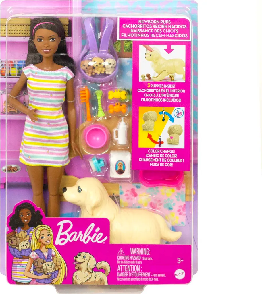 Barbie Puppe (brünett) Mit Hund & Welpen, Set Inkl. Zubehör
