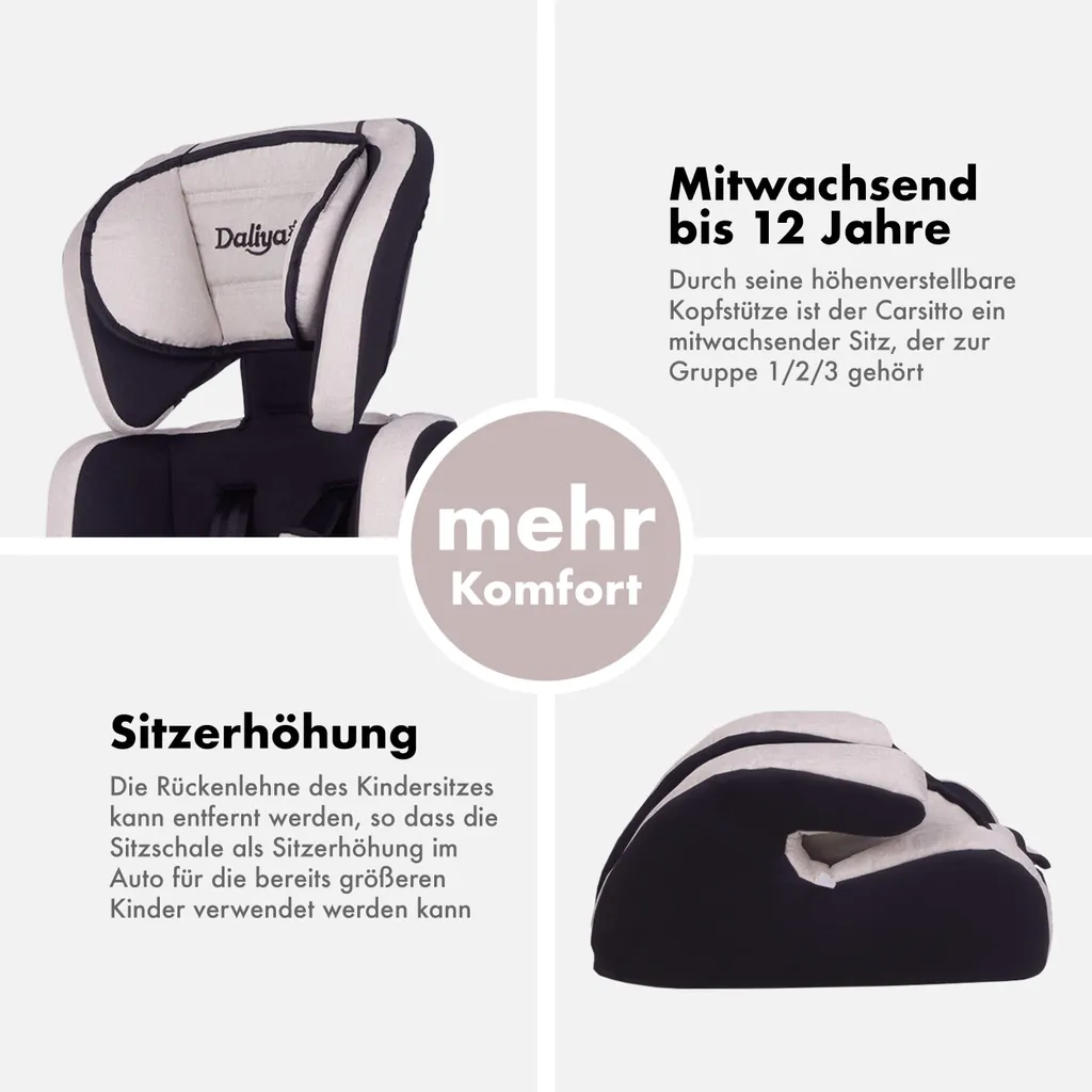 Der sportliche CARSITTO Kindersitz von Daliya® ist mit einem 5-Punkt-Sicherheitsgurt ausgestattet, |