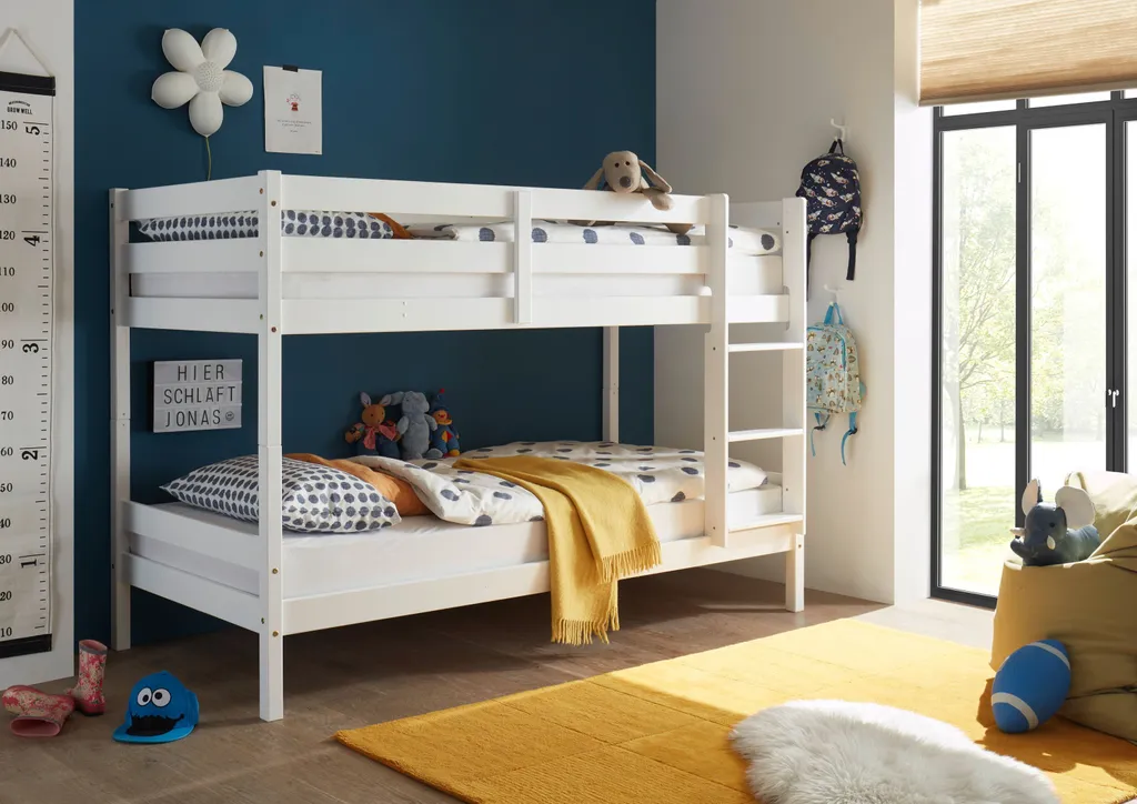 Wenn Sie gerne möchten, dass Ihre Kinder gemeinsam im gleichen Zimmer Aufwachsen sollen, ein 2. Zimmer nicht vorhanden ist, oder die Fläche besser zum Spielen genutzt werden sollte, ist Ihre Entscheidung für dieses Etagenbett genau richtig. Mit diesem Bett werden Sie bei Ihren Kindern mit Sicherheit punkten, denn dieses moderne und praktische Bett aus massiver Kiefer ist zusätzlich ein aufregender Spielplatz. Und wenn Ihre Kids größer werden und keine Lust mehr auf ein Etagenbett haben, oder jeder ein eigenes Zimmer bekommt, können Sie mit wenigen Handgriffen aus dem Etagenbett 2 Einzelliegen stellen. Einfach und durchdacht für die wichtigsten Menschen dieser Welt – Ihre Kinder.