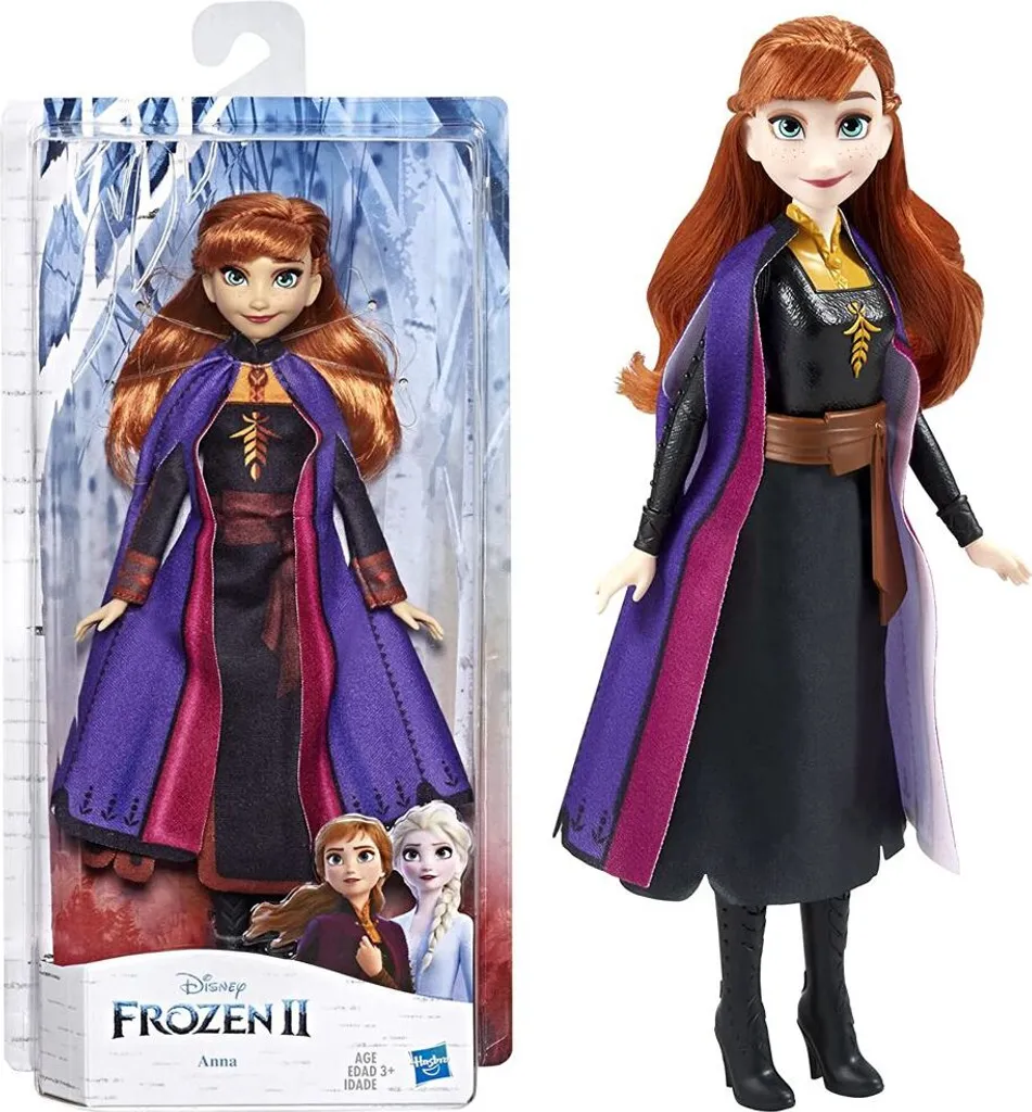 - Anna de las películas de frozen de Disney; uno de los personajes favoritos de los fans de las películas de frozen de Disney, esta muñeca clásica de anna lleva un conjunto inspirado en el que lleva en la película frozen 2 de Disney