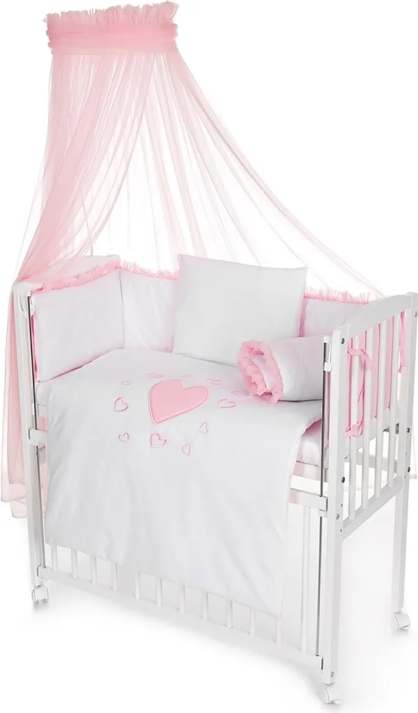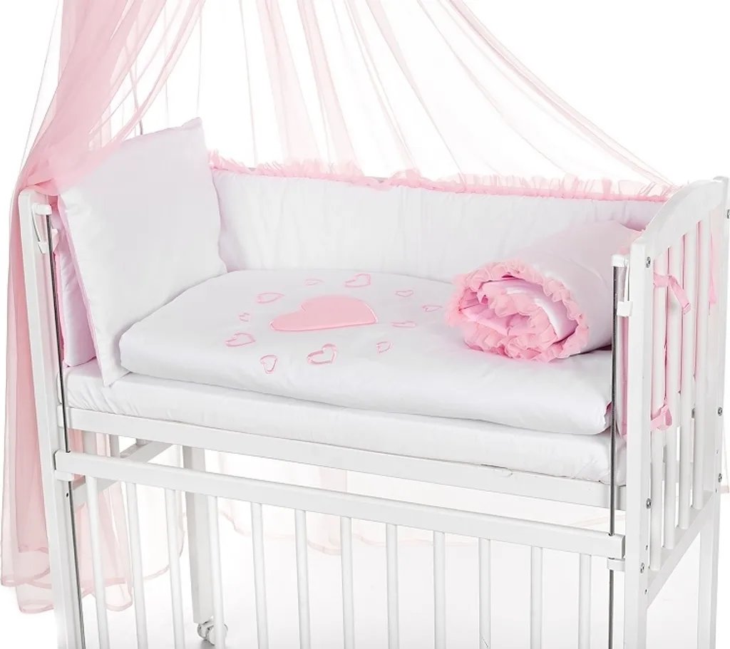 BEISTELLBETT 90×40 cm Herzen rosa bestickt