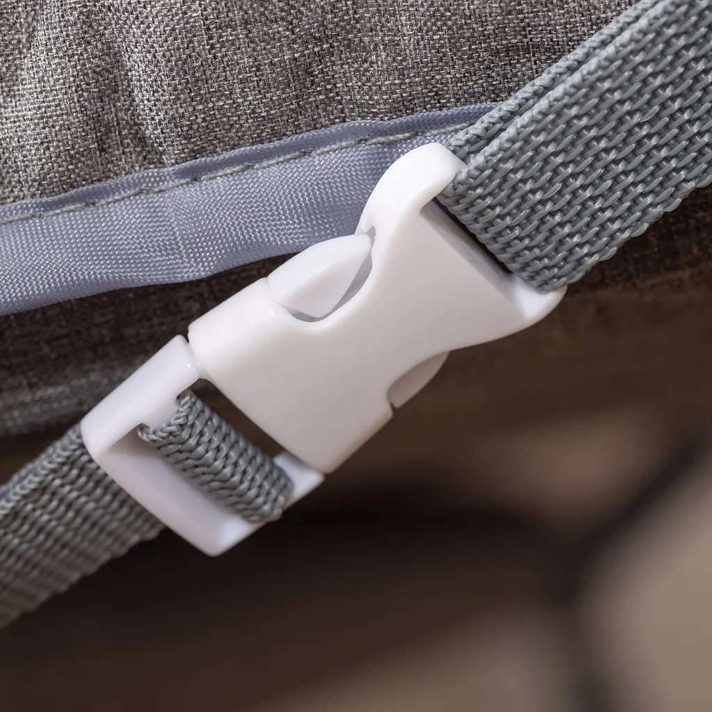 – Der Befestigungsgurt fixiert das Bett sicher am Bett der Eltern