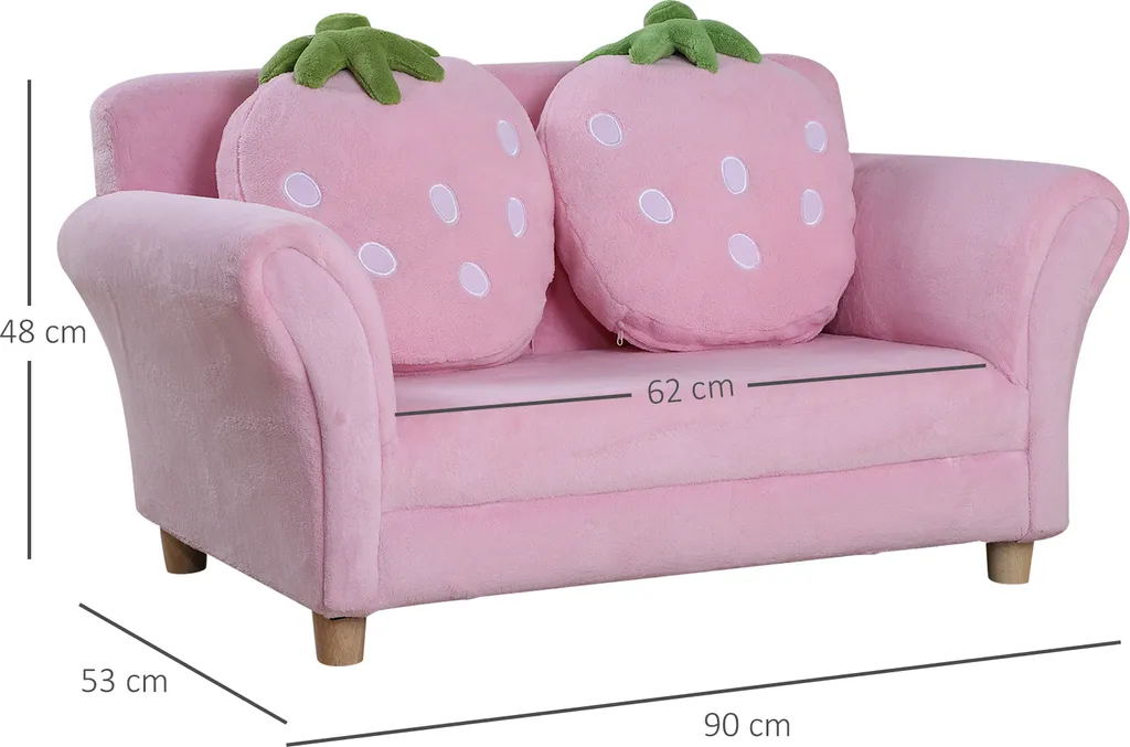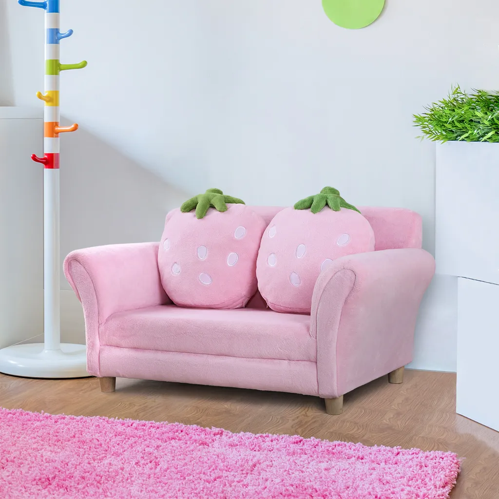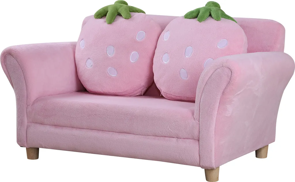 Unser Minisofa mit Erdbeer-Motiv von HOMCOM ist stabil. Und 2 Erdbeerkissen lassen das Kinderzimmer in sommerlicher Frische strahlen. Strapazierfähiger Bezug aus Korallenvlies, ist sehr weich für komfortables Sitzen. Dieses Sofa könnte ein schöner Deko für Ihres Kinderzimmer sein.