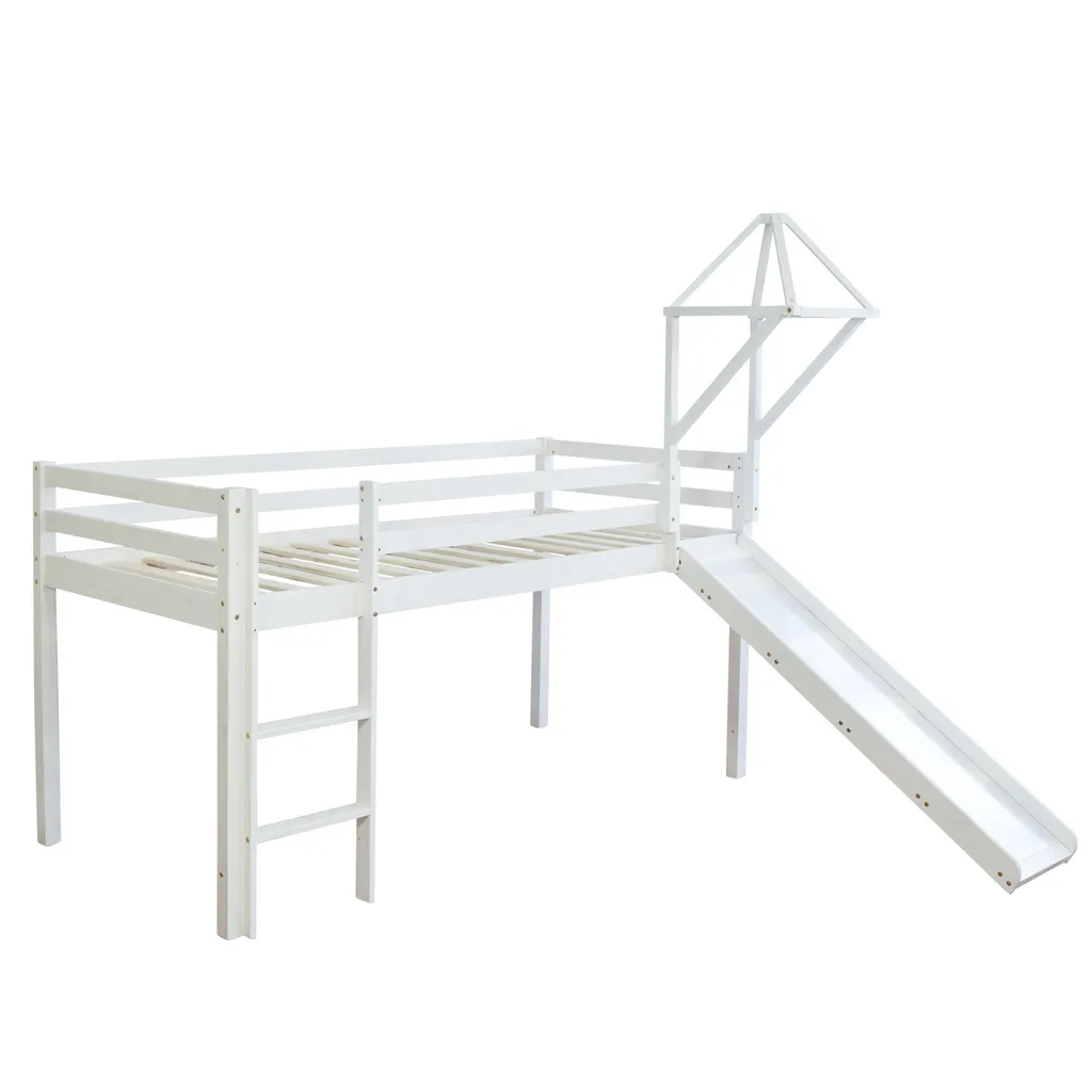 Um beim Klettern und Toben Gefahren zu vermeiden, sind die Kanten des Bettes abgerundet und eine Absturzsicherung schützt das Kind vor dem Herunterfallen. Die Leiter ist wechselseitig montierbar, sodass das Hochbett Ihren räumlichen Gegebenheiten angepasst werden kann.