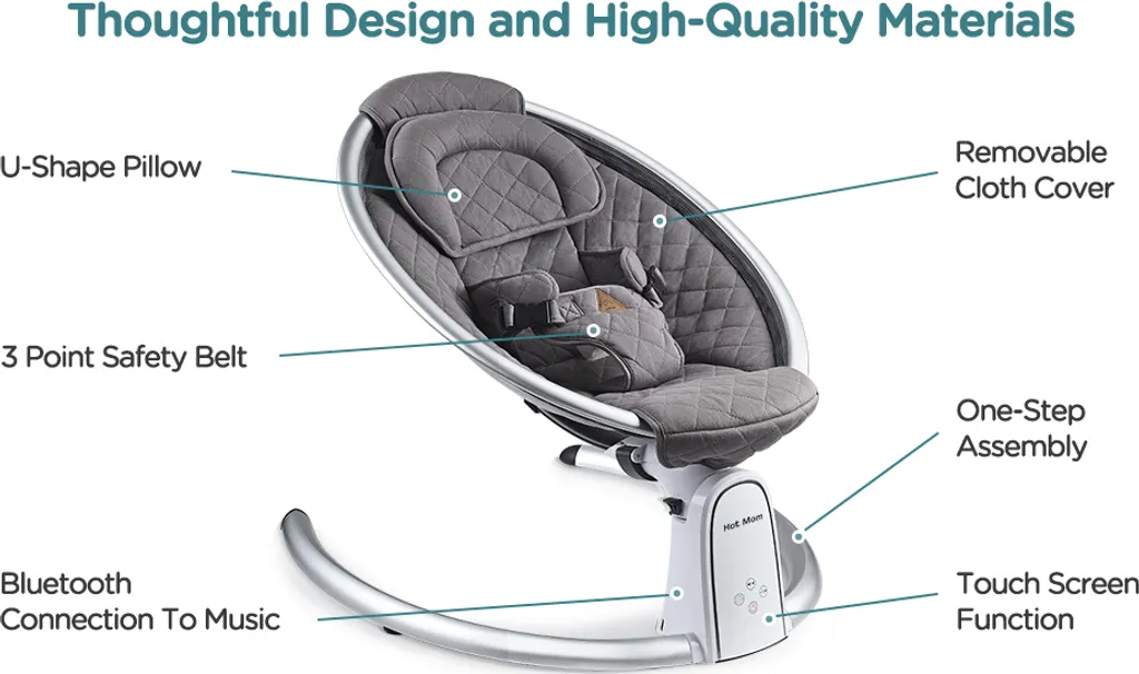 ✔【HAUTFREUNDLICH & ALUMINIUM LEGIERUNG】: Die Hot Mom elektrische Babywippe wurde mit dem Fokus auf Sicherheit und Komfort entwickelt. Der Stoff, aus dem die Babywippe gefertigt ist, ist hautfreundlich und atmungsaktiv. Zudem kann er einfach zerlegt und in der Maschine gewaschen werden, was eine einfache Reinigung ermöglicht. Dadurch wird sichergestellt, dass das Baby jederzeit sicher und bequem sitzt.➤➤➤