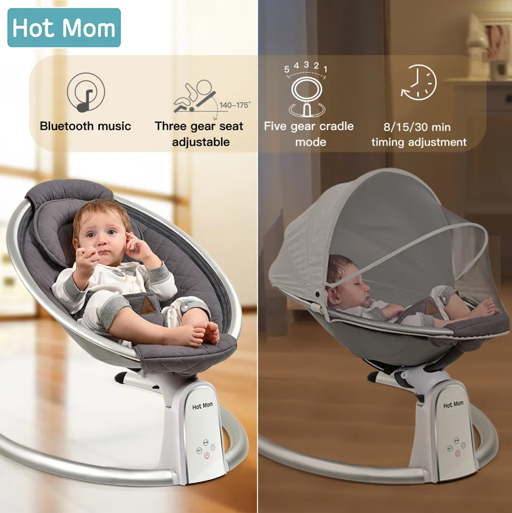 ✔【BLUETOOTH & USB】: Die Hot Mom Babywippe verfügt über eine Bluetooth-Verbindung, mit der Musik und Geschichten wiedergegeben werden können. Dies kann dazu beitragen, Babys schnell zu beruhigen. Die USB-Schnittstelle ermöglicht es, die Babywippe jederzeit von einer Power Bank aus aufzuladen, was besonders praktisch für mobile Schaukelstühle ist.➤➤➤