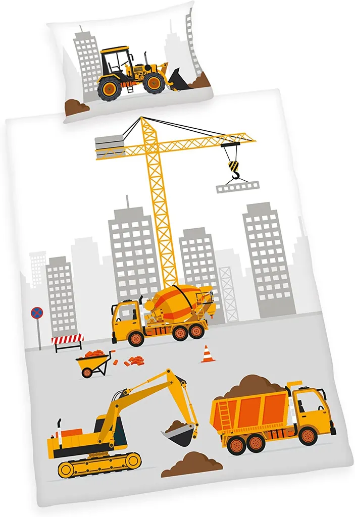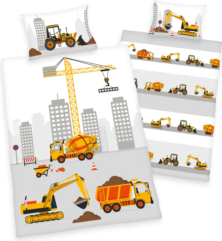 Herding Renforcé Baustelle Bettwäsche Bettbezug 100 x 135 cm Kopfkissenbezug 40 x 60 cm