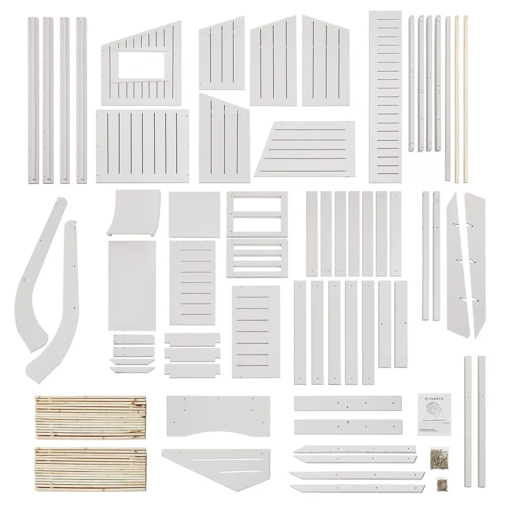Dieses wundervolle Kinderbett möchten Mädchen und Jungs am liebsten sofort nutzen. Im Bausatz finden Sie alle nötigen Teile und Werkzeuge für den schnellen und einfachen Aufbau. Eine anschauliche Anleitung hilft ebenfalls. So errichten Sie in Kürze das Spielbett als neuen Wohlfühlort für Ihr Kind.
