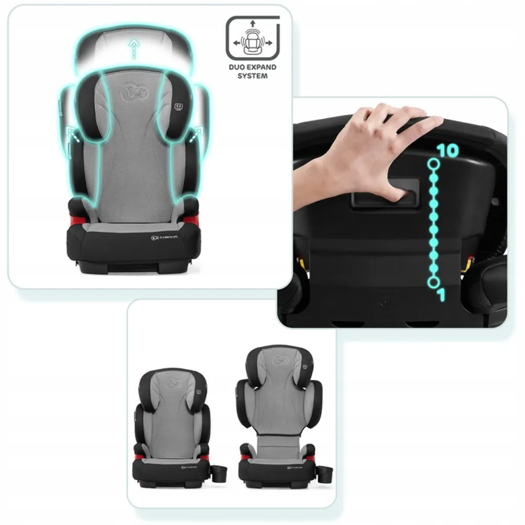Der Autositz hat eine 3-stufige Verstellung des Neigungswinkels. Er ist mit einer Hand einstellbar.