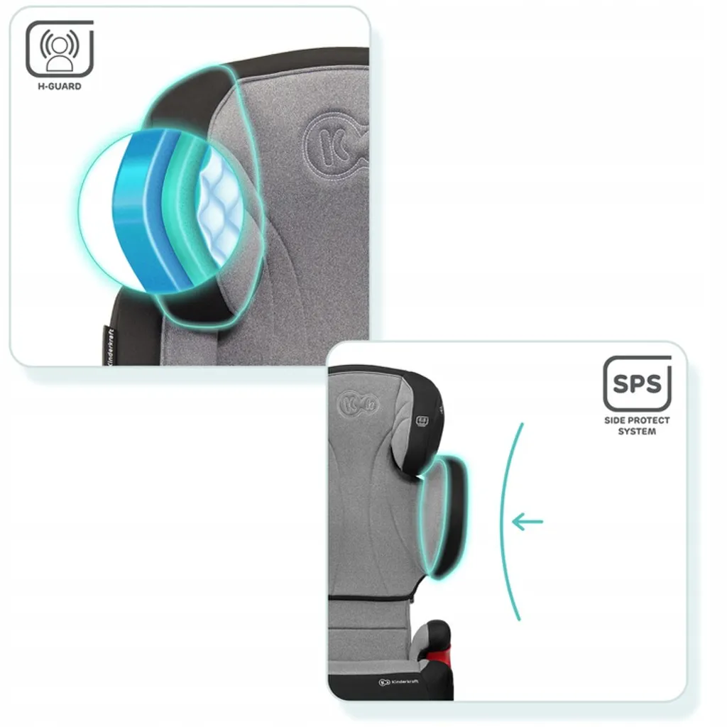 Dank dem speziellen Stoff in der Kopfstütze ist der Autositz weich, bequem, und bietet einen wirkungsvollen Schutz für den Kopf und den Halsbereich des Kindes.