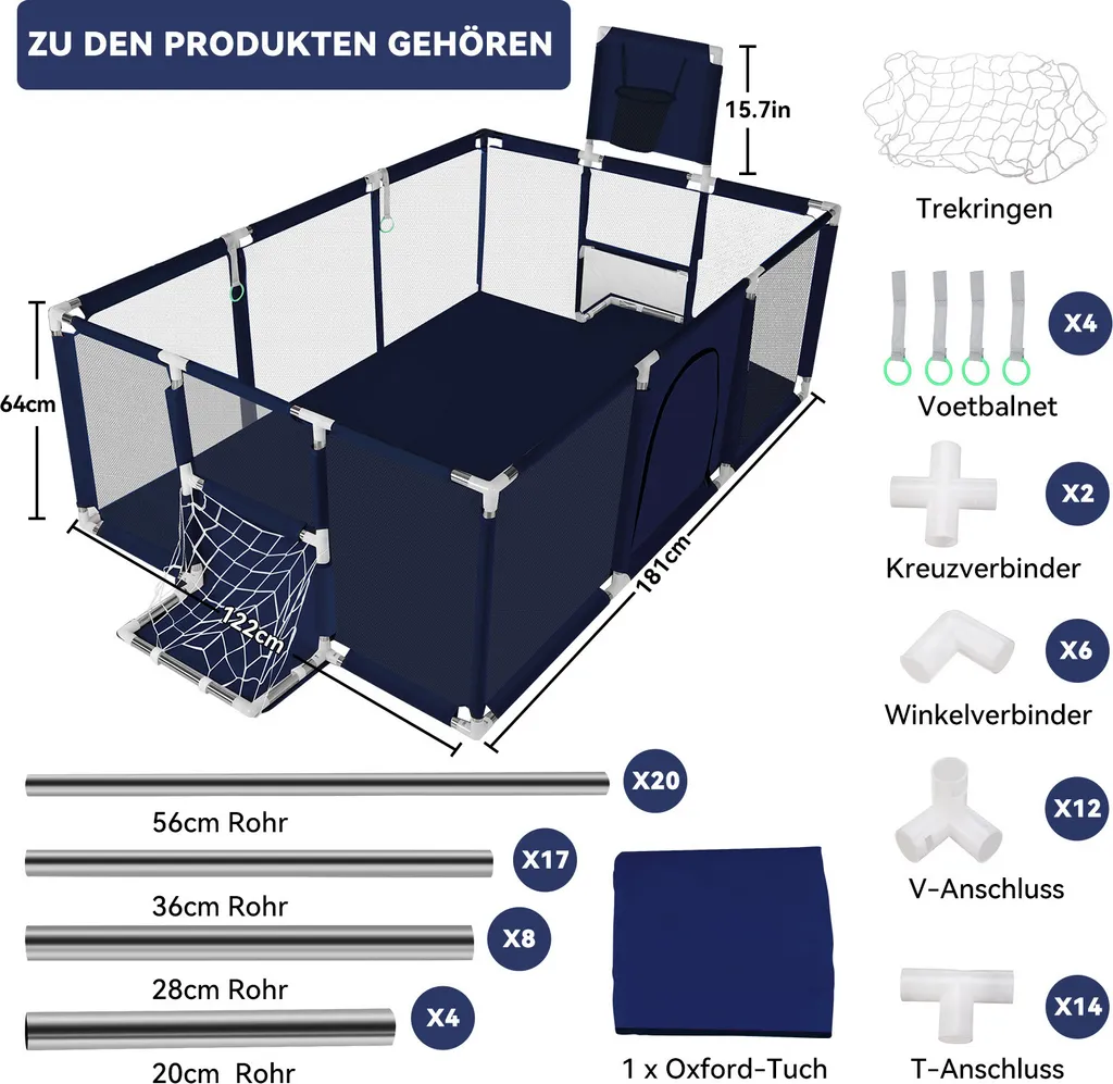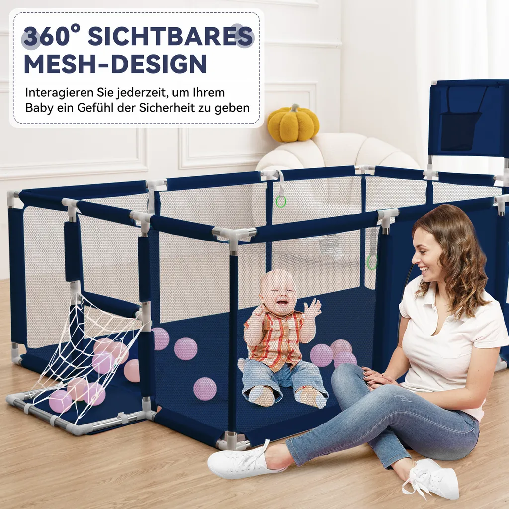 ● Stofflaufstall ist einfach zu montieren. Es bietet Ihrem Kleinen einen guten Platz zum Spielen und lässt sich dennoch leicht überall in Ihrem Zuhause platzieren. Es ist eine großartige Möglichkeit, Ihrem Kind Bewegungsfreiheit zu geben und gleichzeitig sicherzustellen, dass es an einem sicheren Ort ist.