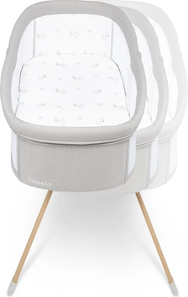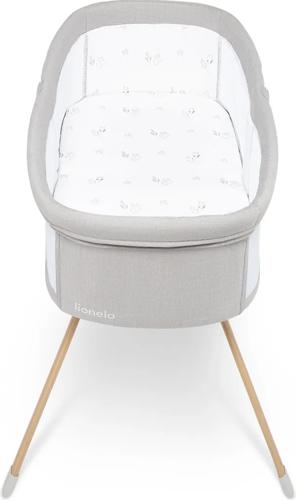 Universelles und zugleich stilvolles Material passt perfekt in jeden Innenraum. Die ästhetischen Beine in hölzerner Farbe betonen den einzigartigen Look der 3-in-1 Wiege Lionelo Malin Evo.