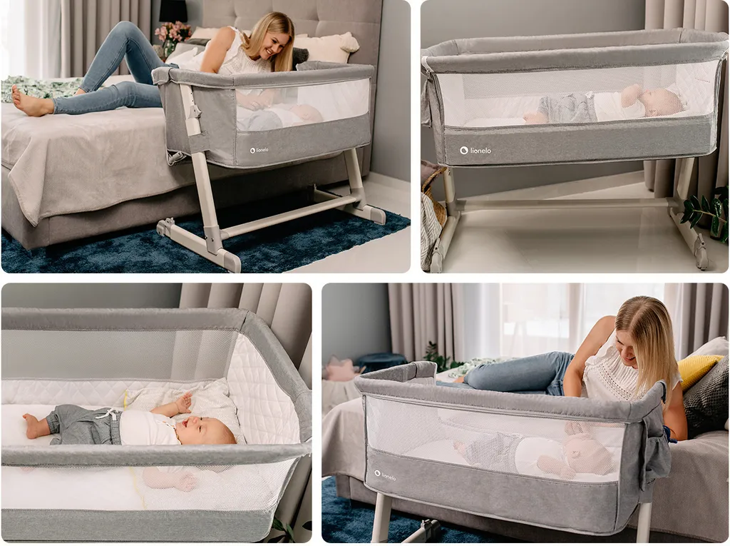 Dank dem Baby Beistellbett Theo von Lionelo können das Baby und die Eltern nahe beieinander schlafen. Dies wiederum ermöglicht es dem Kind, sich sicher zu fühlen und eine starke Bindung zu den Eltern zu entwickeln. Das Bett kann dank der Rollen und den schrägen Beine direkt neben dem Bett eines Elternteils bewegt werden. Dies kann auch für stillende Mütter von großem Nutzen sein.