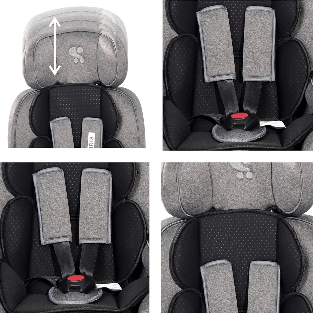 Der Kinderautositz Iris von Lorelli ist aus der Gruppe 1/2/3 und für Kinder ab neun Monate bis circa zwölf Jahren geeignet. Die Kopfstütze und Sicherheitsgurte sind in drei Höhenpositionen einstellbar. Der Kindersitz ist schnell mit dem Isofix-System im Fahrzeug montiert. Ihr Kind wird mit dem 5-Punkt Sicherheitsgurt mit Schloss- und Schulterpolstern im Sitz gesichert. Das weiche Kopf- und Körperkissen bietet zusätzlichen Komfort während der Fahrt. Die Rückenlehne des Kindersitzes lässt sich entfernen, wodurch Sie einen Booster Sitz für größere Kinder erhalten. Ihr Kind wird dann mit dem 3-Punkt Sicherheitsgurt des Fahrzeuges gesichert.