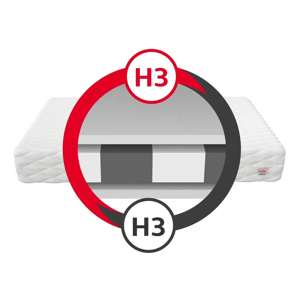 Die Basis der LUIGI Matratze ist ein hochwertiger, hochelastischer HR-Zonen-Schaum. Er hat eine nicht einheitliche Zellstruktur, die für Körperunterstützung, Komfort und Elastizität sorgt. Ein weiterer Vorteil ist die gute Belüftung und die Widerstandsfähigkeit gegen Verformungen. Beidseitig wurde er mit T25 Polyurethan Schaum bedeckt.