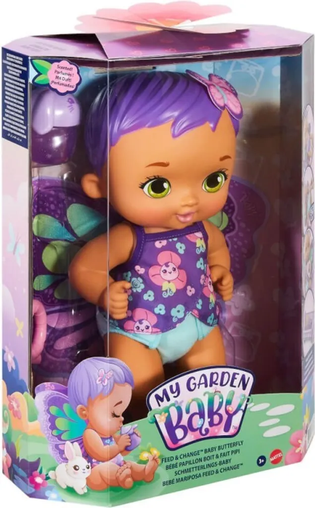 Die My Garden Baby Schmetterlings-Baby Puppe zum Füttern und Anziehen (30,5 cm) eignet sich für das klassische Spielen mit der Babypuppe – auf fantastische Weise! Dieses Schmetterlings-Baby, das mit weichen Flügeln, fantastischen Haaren und einem süßen Jasminduft auf die Welt gekommen ist, ist einfach zum Liebhaben. Die Häschenflasche mit Wasser füllen, das Baby füttern und dann die Stoffwindel wechseln. Es ist mit einem abnehmbaren Oberteil bekleidet und hat auch ein Beißspielzeug! Wenn es Zeit für ein Nickerchen ist, lassen sich die Flügel abnehmen und zu einer Decke zusammenlegen. Und die Verpackungsbox lässt sich zu einem Bettchen falten, in dem dieses Schmetterlings-Baby in süße Gartenträume hineinflattern kann. Kleine Kinder werden sich mit Begeisterung um ihr My Garden Baby kümmern! Abweichungen in Farbe und Gestaltung vorbehalten.
