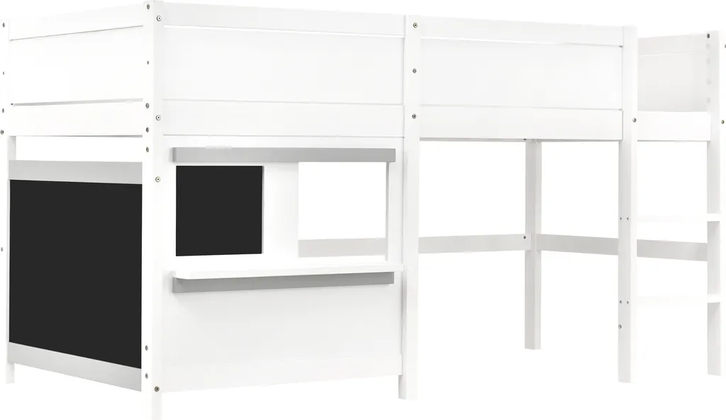 Natürlich und minimalistisch, dieses Spielbett mit Tafel ist rein und zurückhaltend in neutralen und monochromen Tönen. Die Tafel unter diesem Etagenbett ist so gestaltet, dass Kinder darauf kritzeln und ihrer Fantasie freien Lauf lassen können. Dieses Design ist sehr kindlich und kann auf kindliche Vorlieben eingehen. An der Vorderseite des Bettes befindet sich auch eine kleine Tafel, darunter eine kleine horizontale Version, auf der Sie Pinsel oder kleine Ornamente ablegen können. Das Produkt bietet viel Platz zum Spielen und Aufbewahren.Normalerweise kann der untere Teil des Produkts als Kinderspielplatz genutzt werden.Gleichzeitig kann es auch als Ruhebereich genutzt werden, indem eine Matratzeaufgelegt wird, wodurch es zu einer Liegefläche wird Etagenbett. Neben Funktionalität und Spaß steht bei dem Produkt auch die Benutzersicherheit im Vordergrund. Dieses Kinderbett mit Bücherregal ist für Matratzen mit den Maßen 90 x 200 cm geeignet.