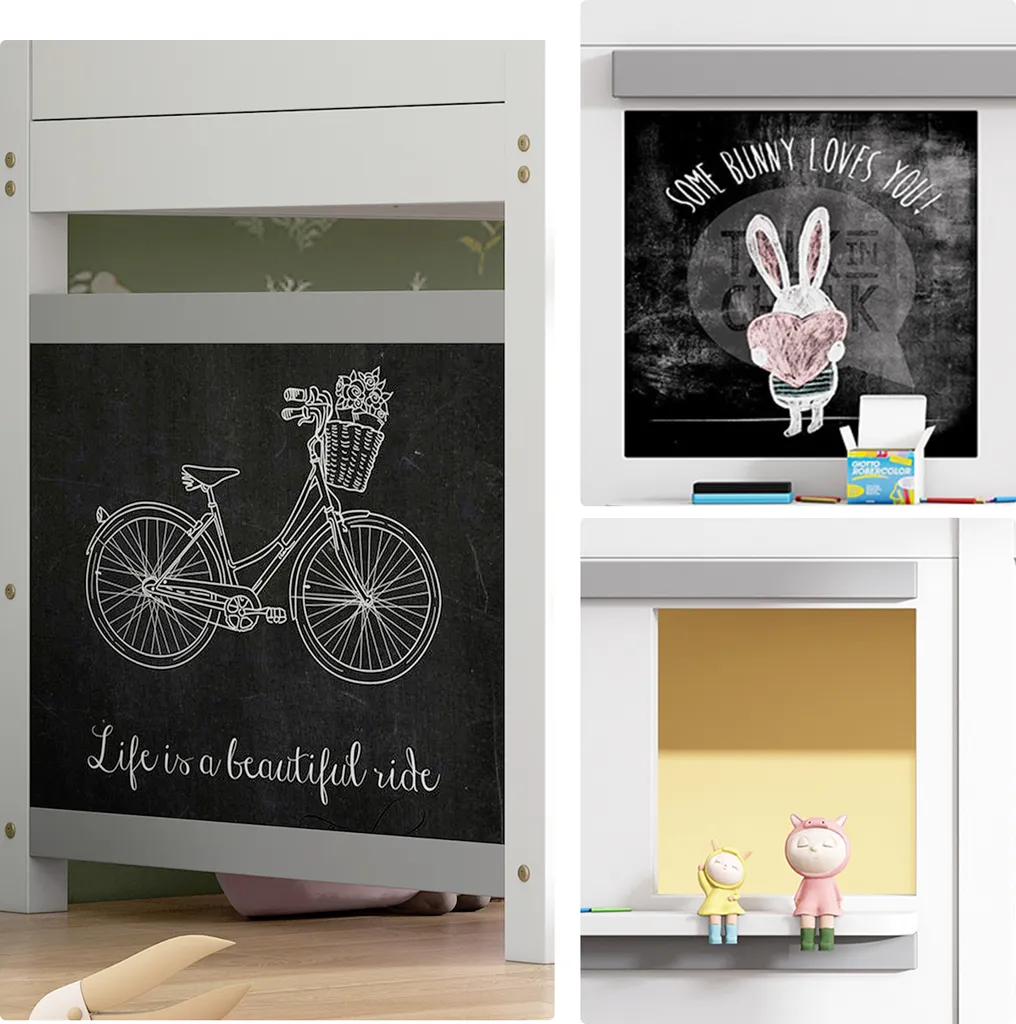 - Das Design von zwei beschreibbaren Tafeln macht das Bett zum Spielplatz für Kinder zum Spielen.