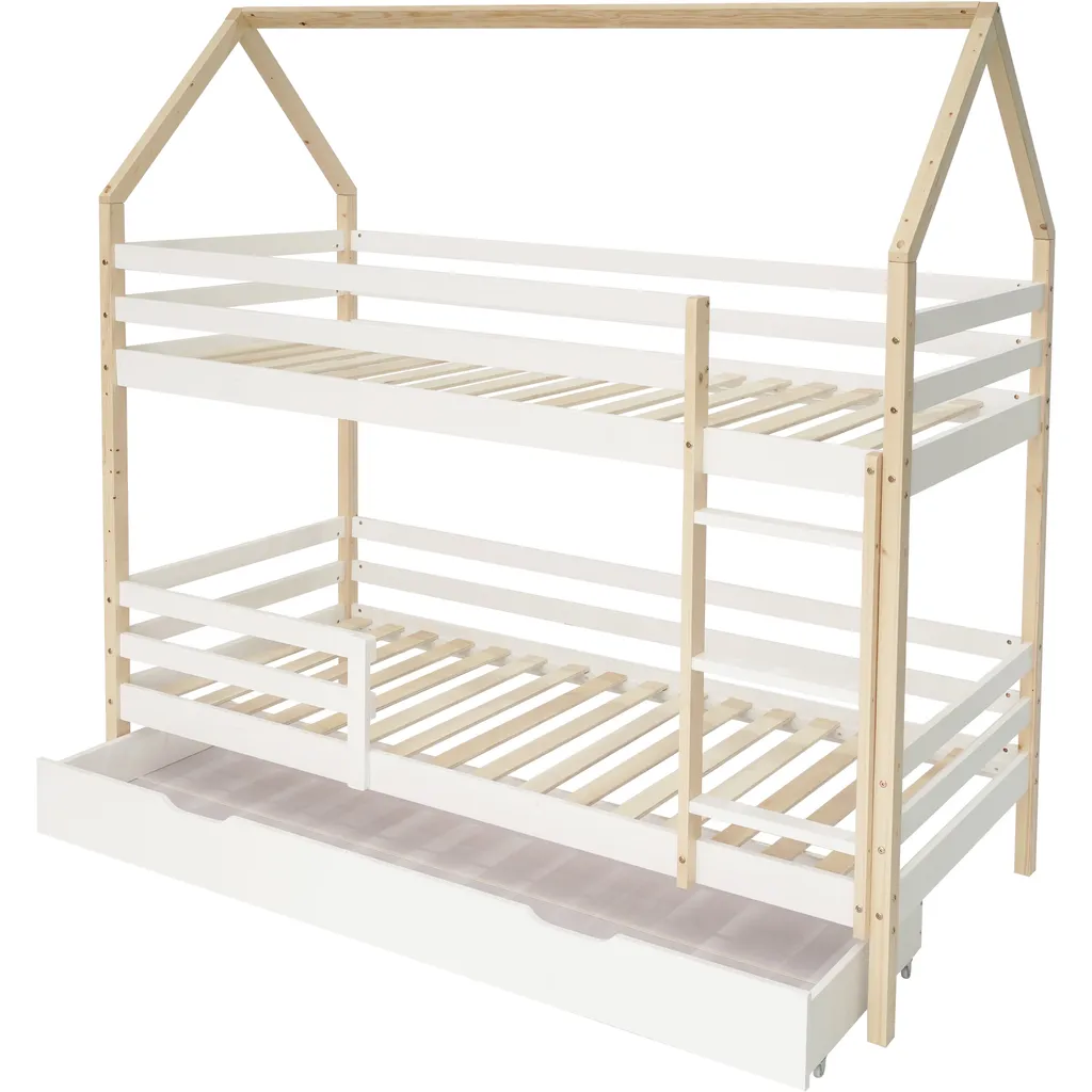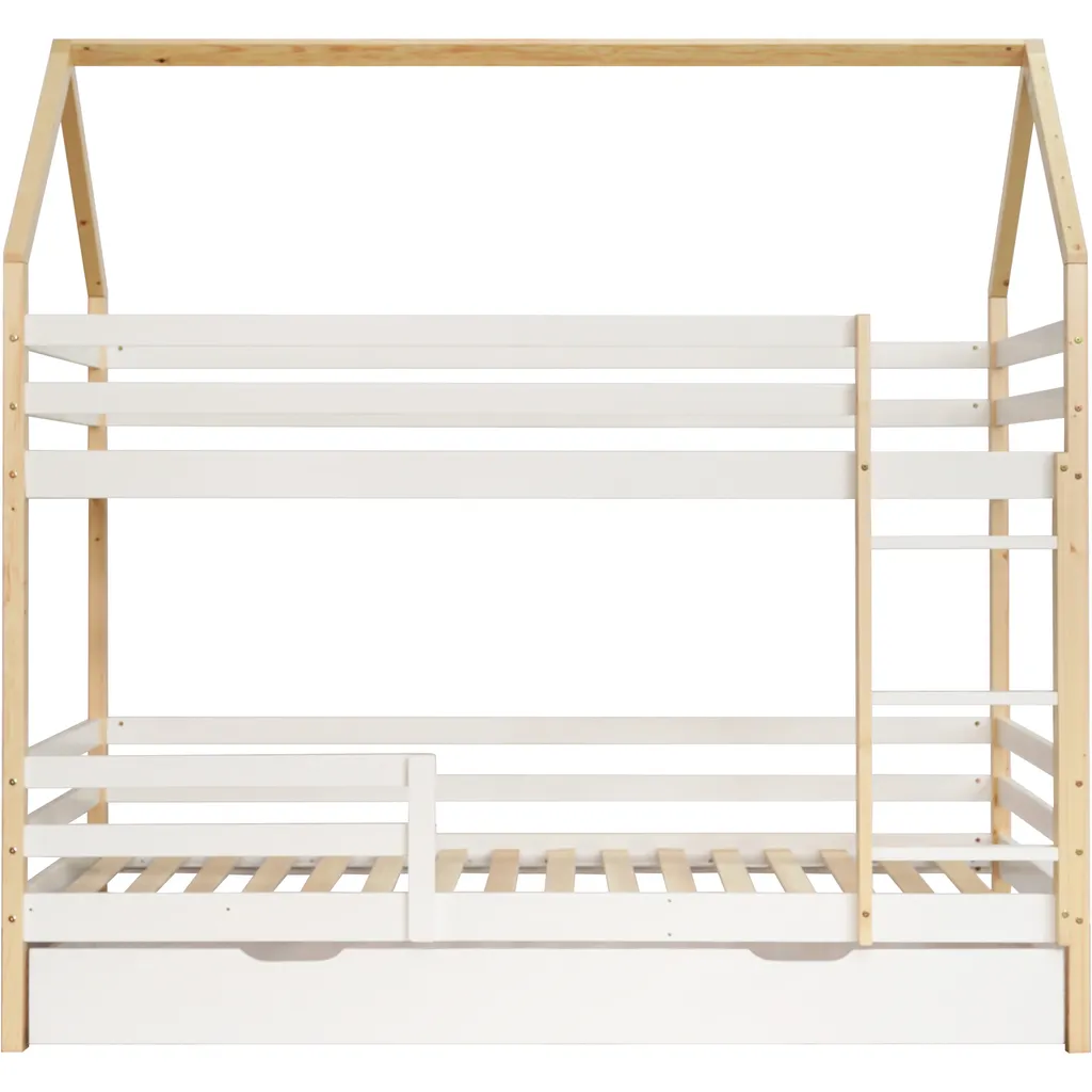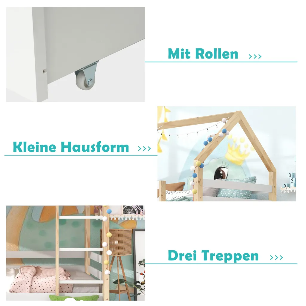 🌱【Elegantes Design】Die Form des niedlichen kleinen Hauses kann Kindern ein warmes Schlaferlebnis bescheren. Das Design des Etagenbettes stellt Familien mit vielen Kindern zufrieden. Die Kombination aus Holzfarbe und Weiß kann das Kinderzimmer wärmer machen.