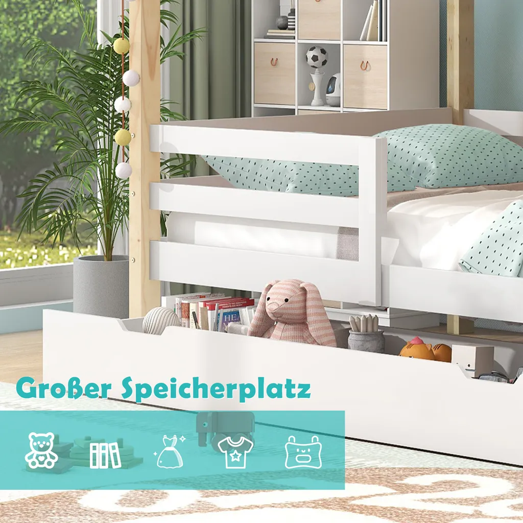🌱【Großer Stauraum】Das untere Bett ist mitübergroßen Schubladen zur Aufbewahrung ausgestattet, was für Eltern praktisch ist, um die Gegenstände ihrer Kinder aufzubewahren und eine komfortable und ordentliche Schlafumgebung für ihre Kinder zu schaffen.