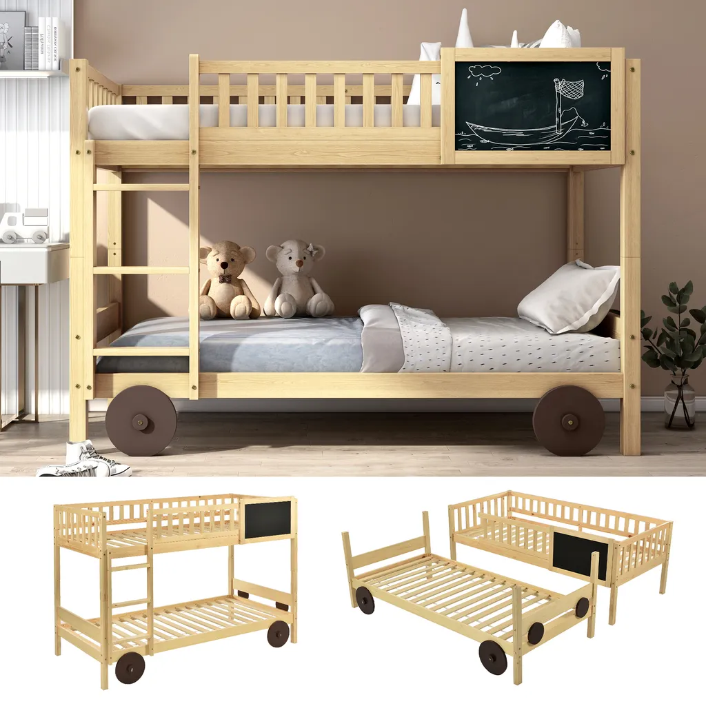 🌱【Praktisches Etagenbett】Das obere Bett mit Tafel ermöglicht es dem Kind, frei zu kritzeln. Das obere und untere Etagenbett kann in zwei Einzelbetten aufgeteilt werden. Die Struktur des Bettes kann frei nach Ihren Wünschen gestaltet werden.
