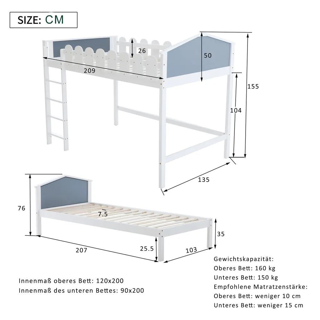 🌱【Einfach zu montierender Etagenbettrahmen】Ein Etagenbett aus Holz ist eine wertbewusste Wahl, da es keine Federn oder Fundamente benötigt. Einfach die Matratze auflegen (Matratze nicht im Lieferumfang enthalten). Dieses Etagenbett für Kinder wird aus Deutschland in einem 2er Karton versendet. Manchmal kommen 2 Kartons nicht am selben Tag an.