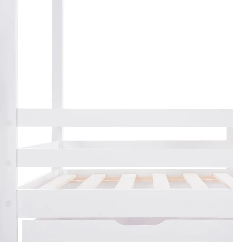 🌱【Praktikabilität und Kreativität kombinieren】Das Bett hat eine allgemeine Dachform,die den Bewegungsraum erweitert.Die einzigartige Konstruktion ermöglicht es Ihnen, dem Schlafzimmer Ihres Kindes ein fantasievolles Gefühl der Kreativität zu verleihen. Sie können auch Zelte aufstellen, in denen Ihre Kinder mit ihren Freunden oder Geschwistern Verstecken spielen und sicher und fest schlafen können.