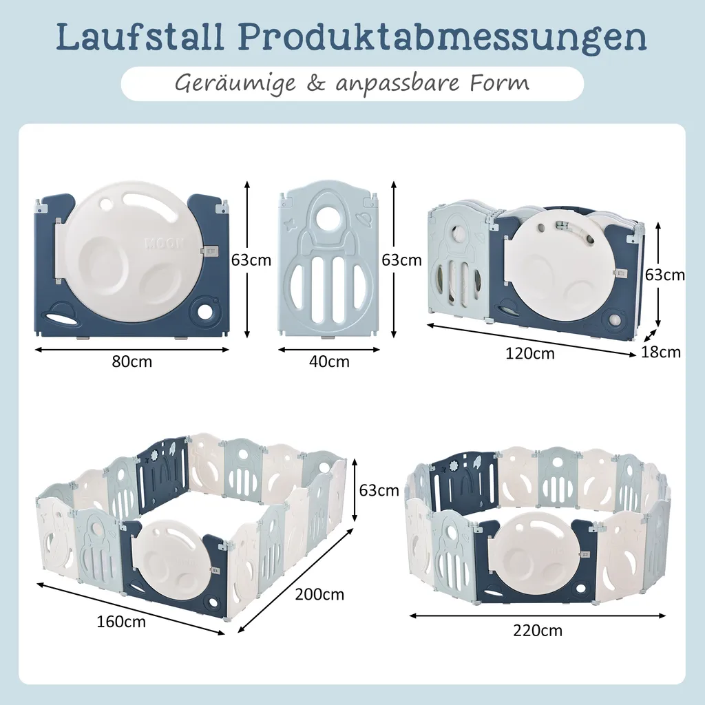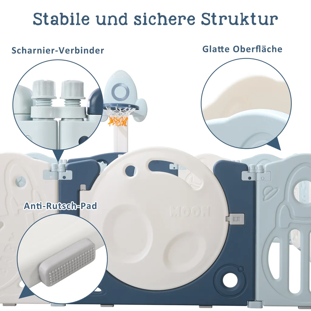 🌱【Sicherer Schutz für Kinder】Das Laufgitter ist aus umweltfreundlichem HDPE-Material hergestellt und geruchsneutral. Die Kanten des Laufstalls sind sorgfältig poliert, damit sie sich glatt anfühlen und leicht zu reinigen sind. Das gesamte Produkt hat die der Serie EN71 bestanden.