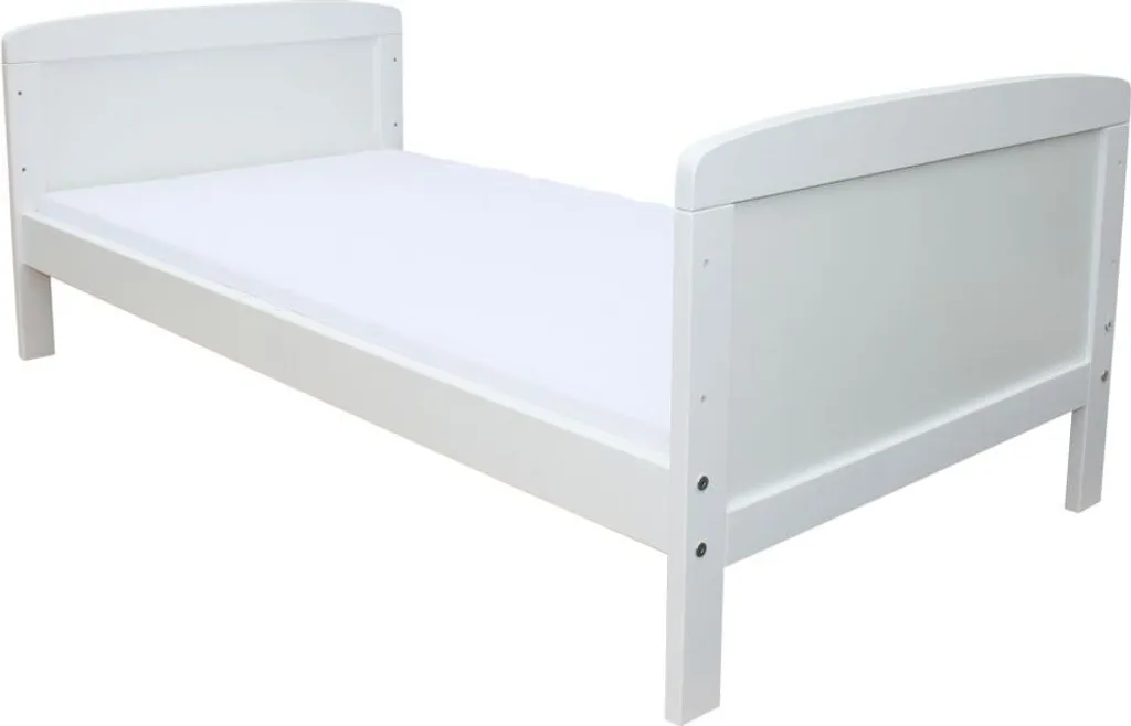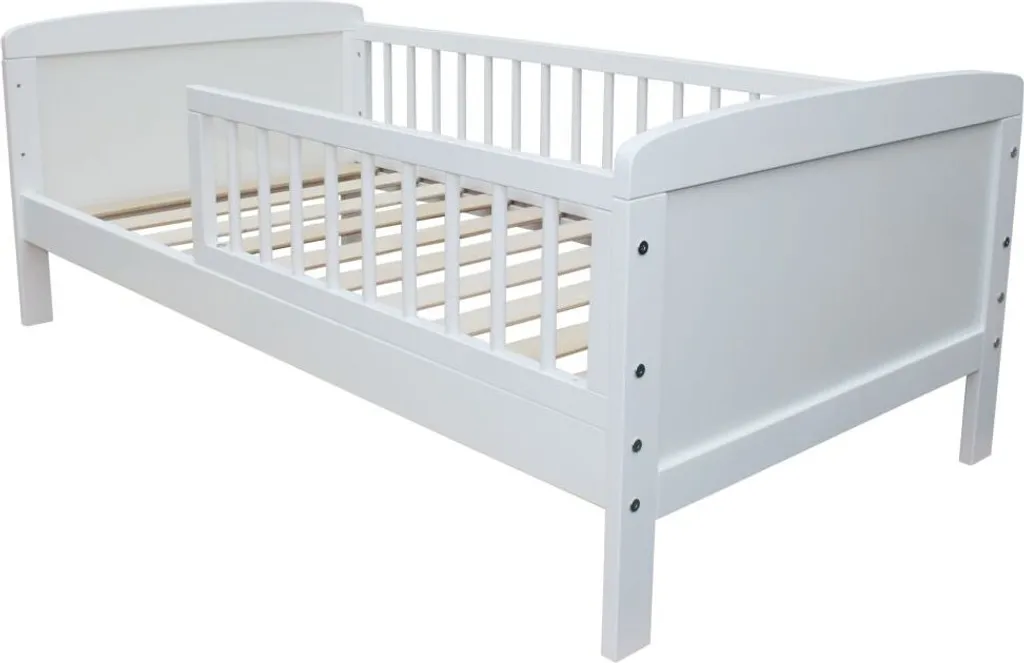 seitliche Gitter können abgenommen werden, dadurch entsteht ein normales Bett