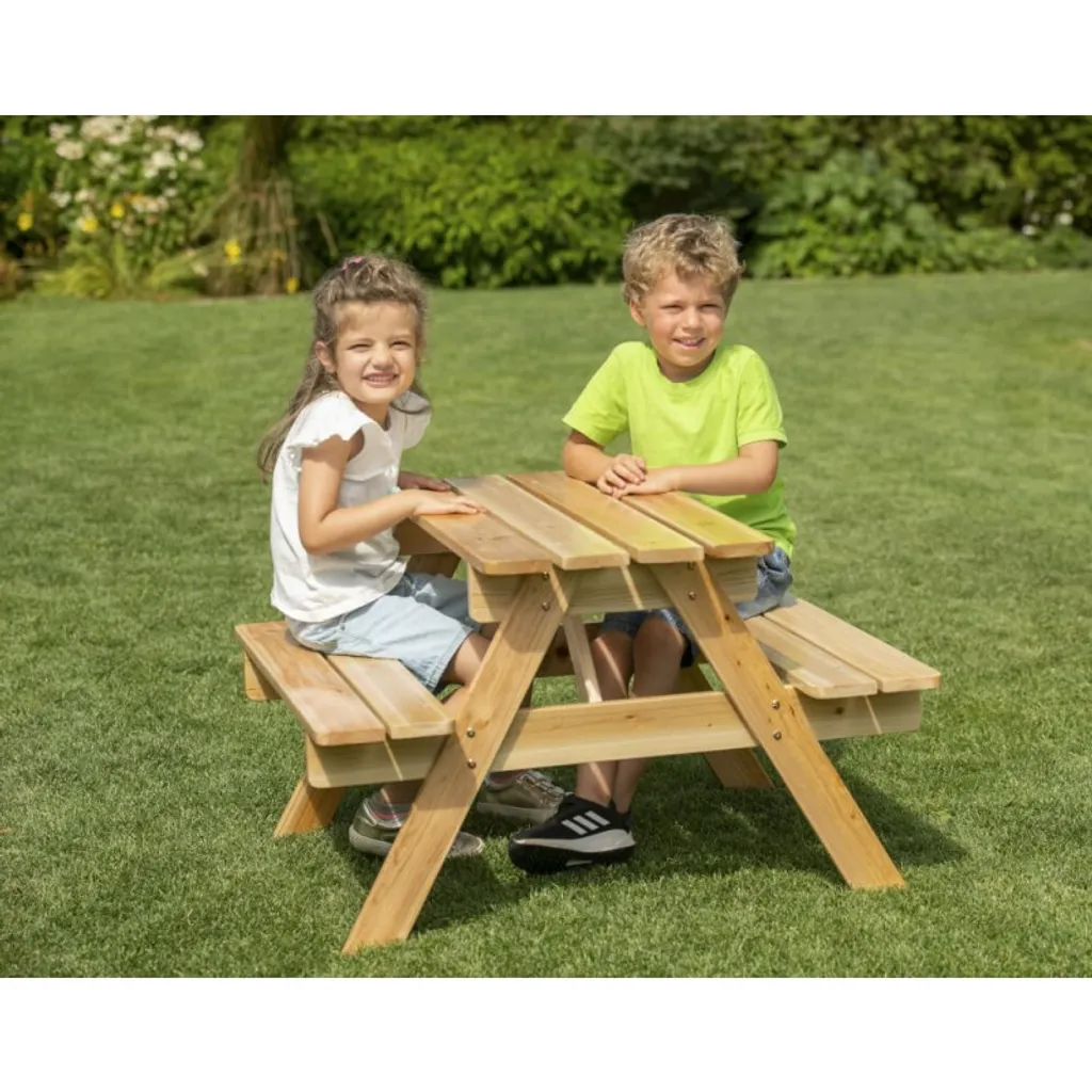 Outdoor active Sitzgarnitur, bestehend aus einem Tisch mit zwei Bänken. Maße aufgebaut ca. 89x78x50 cm. Für Kinder ab 3 Jahren.