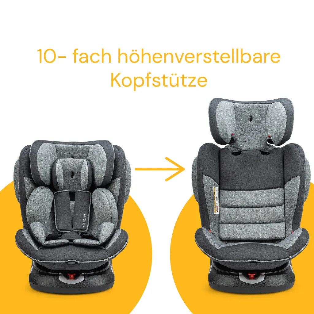 Unser Swift360° ist der wohl erste drehbare Kinderautositz seiner Klasse und überzeugt auf vollere Länge.