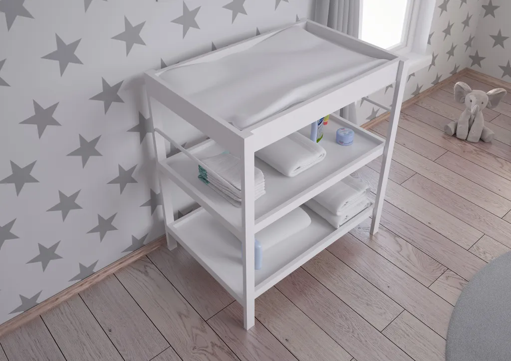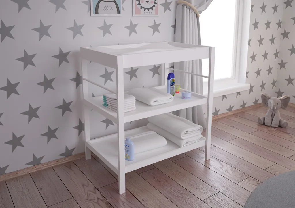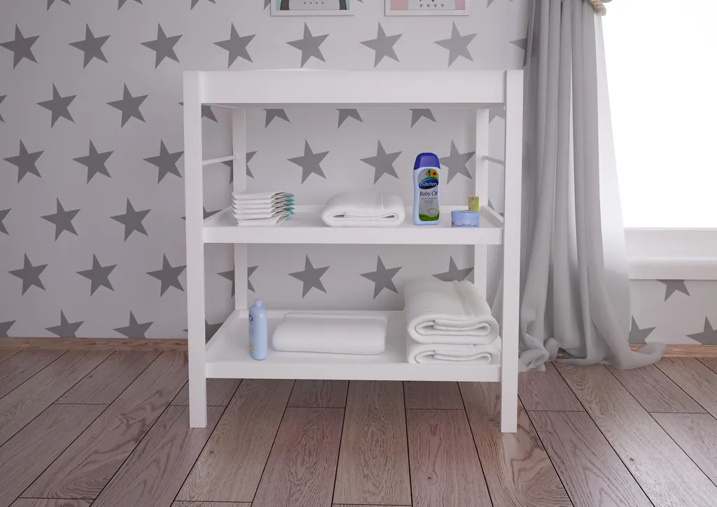 Die Wickelstation von Polini Kids überzeugt mit optimaler Wickelhöhe, 2 Ablageböden mit viel Stauraum. Alle Pflegeartikel des täglichen Bedarfs sind stets griffbereit. Eine umlaufende Umrandung verhindert dabei ein Herunterfallen der Utensilien.