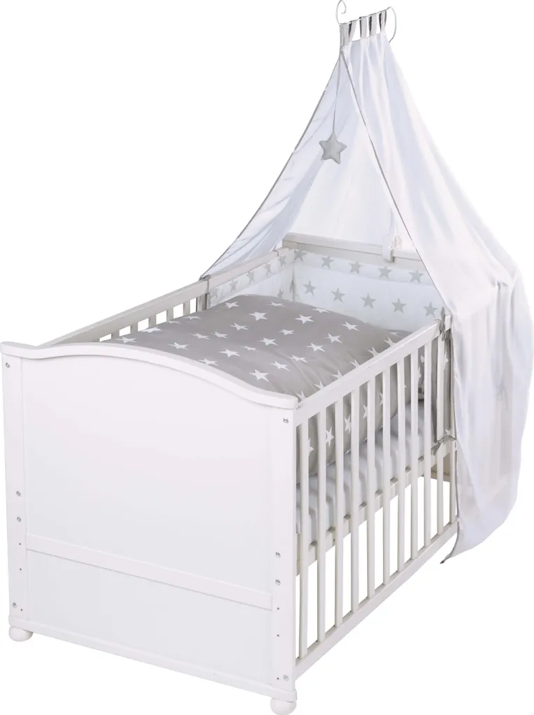 Roba Komplettbettset ‚Little Stars‘, Weiß, 79x153cm Inkl. Bettwäsche, Himmel, Nest, Matratze