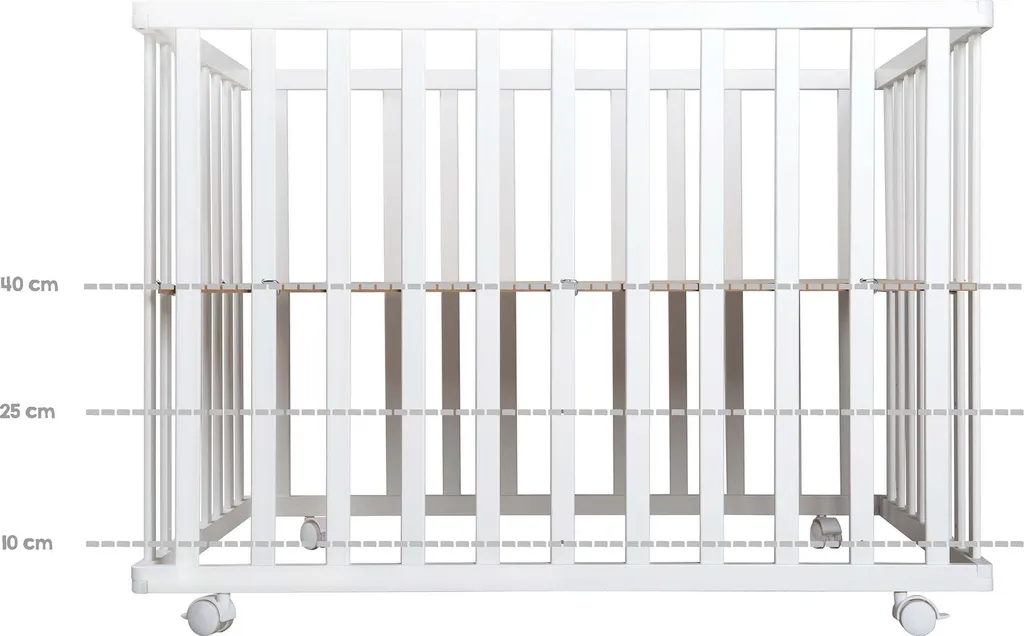 - Der sicherheitsgeprüfte Laufstall bietet eine schöne Spiel- und Kuschelfläche. Die 3-fache Höhenverstellbarkeit lädt Eltern mit Freude zum Spielen mit ihren Babys ein.