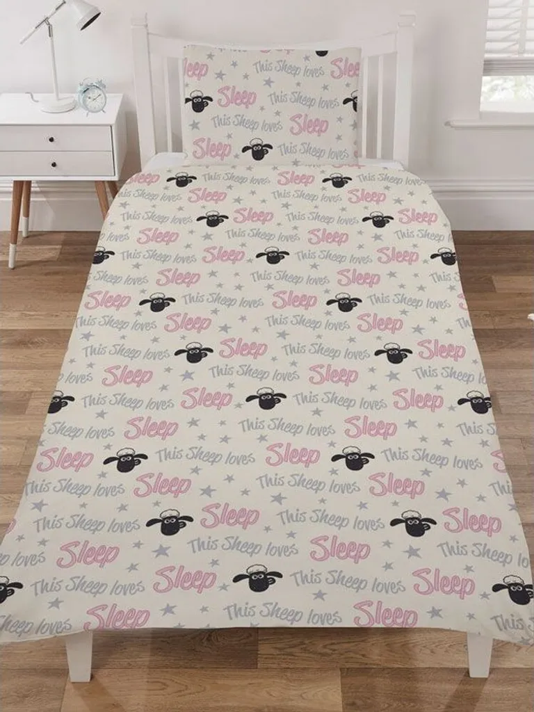 Shaun The Sheep – Bettwäsche-Set „Loves Sleep“ AG125 (Einzelbett) (Grau/Schwarz/Pink)