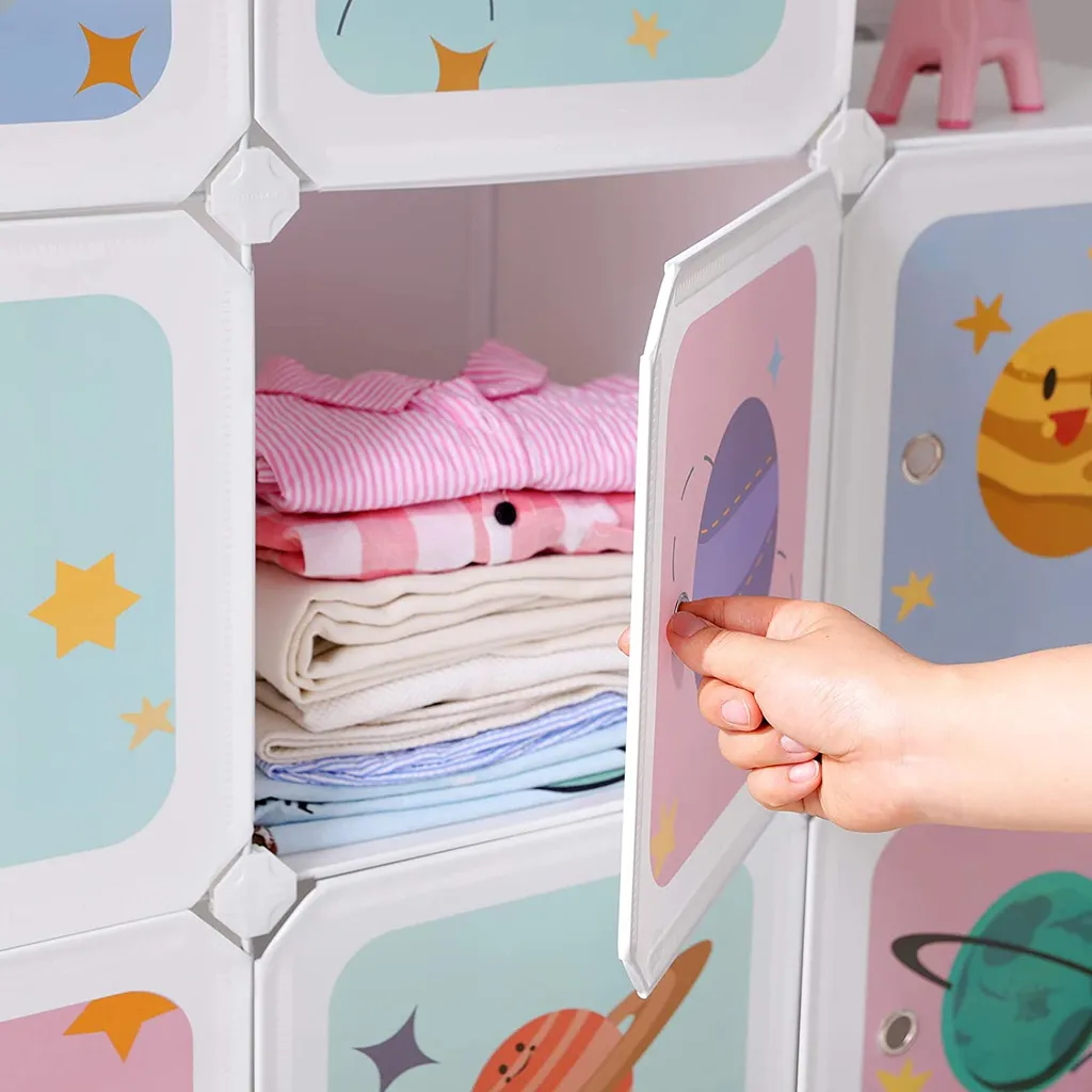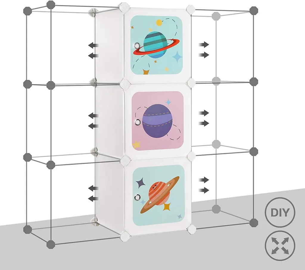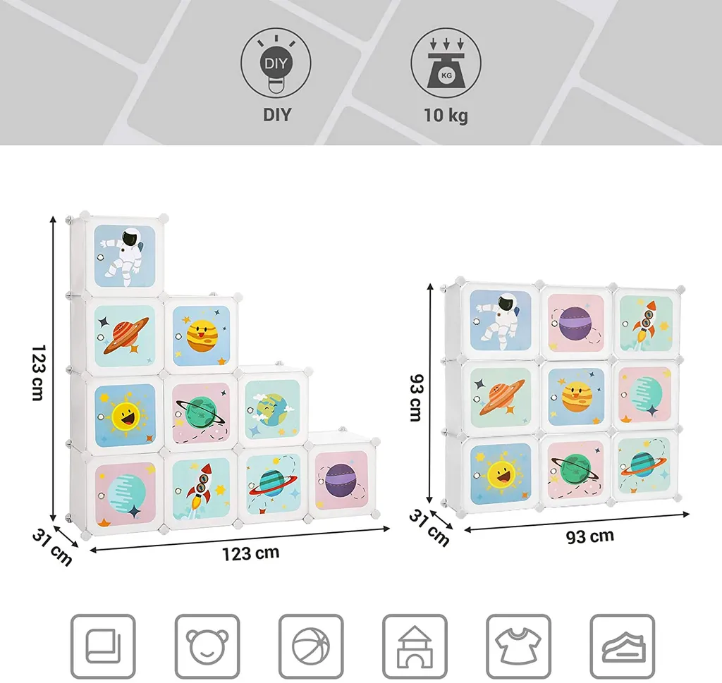 Dieser süße Aufbewahrungsschrank regt Ihre Kinder zum Aufräumen an! Spielzeug, Kleidung, Bücher – egal ob groß oder klein – können in diesem Aufbewahrungsschrank untergebracht werden (pro Würfel bis 10 kg belastbar)