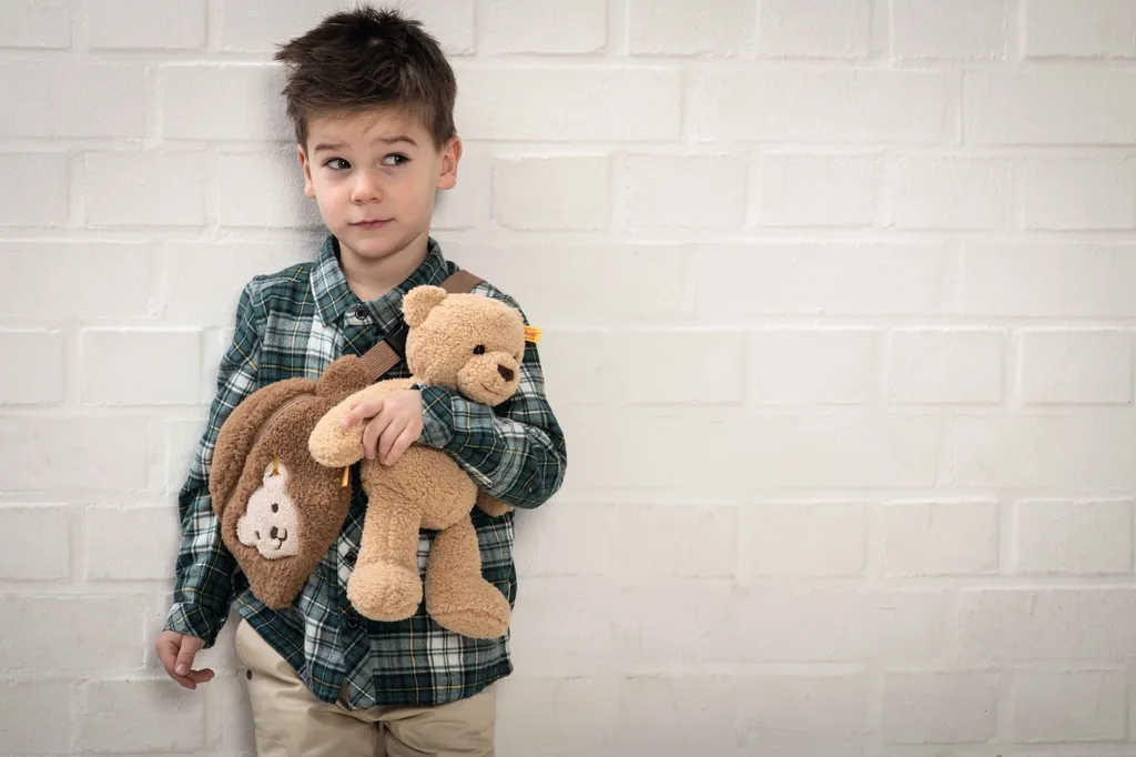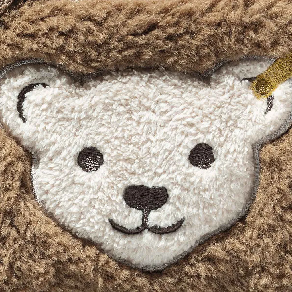 Für Kleinigkeiten, die man keinesfalls verlieren sollte, gibt’s in der neuen Steiff Bärenbande die schicke Gürteltasche mit Quietsche: 20 cm groß und aus kuschelweichem, tabakbraunem Teddyfleece. Ihr farblich abgestimmter, verstellbarer Gürtel sorgt mühelos für festen Halt beim Spielen, der oben angebrachte Reißverschluss mit Teddyzipper macht das Ein- und Auspacken sicher. Dazu lacht das kuschelig-fröhliche Teddybärmotiv alle an, die Quietsche bringt Extra-Spaß bei jedem Draufdrücken… Wir feiern „120 Jahre Teddybär“ – und alle sind dabei!